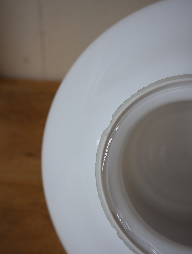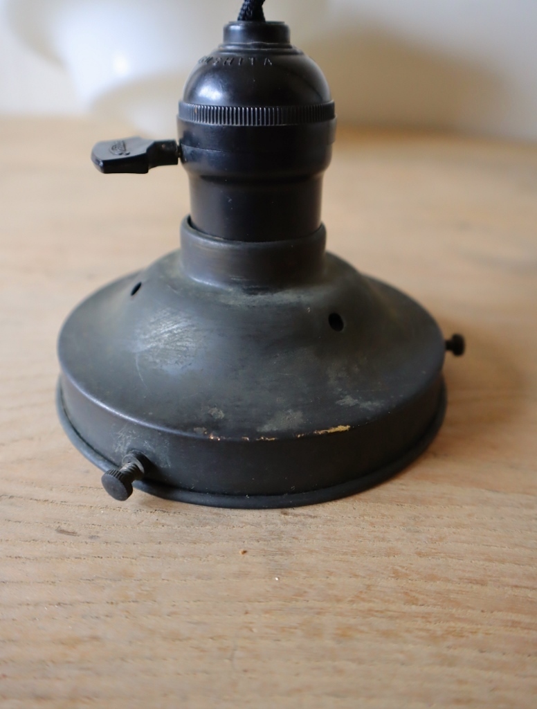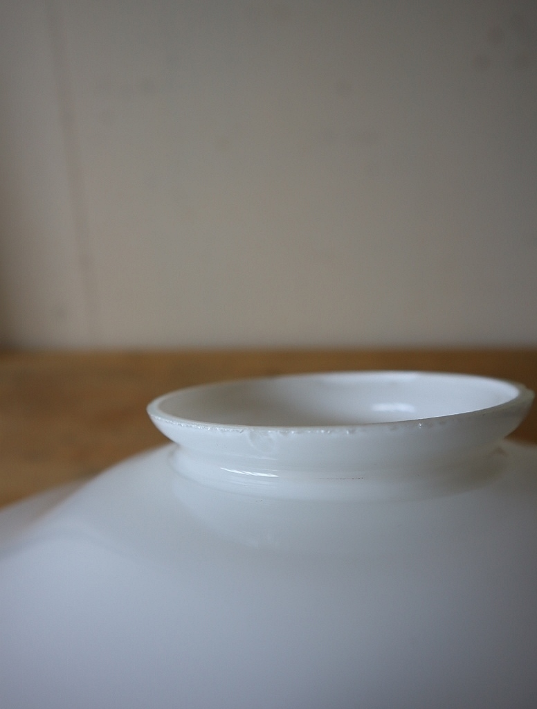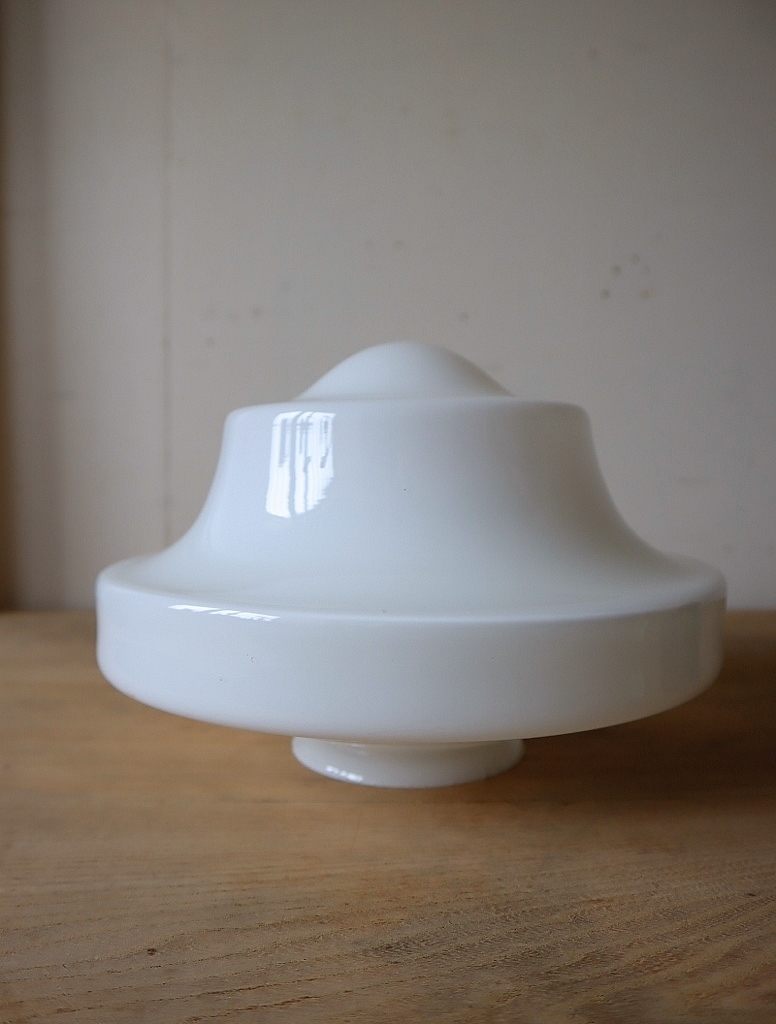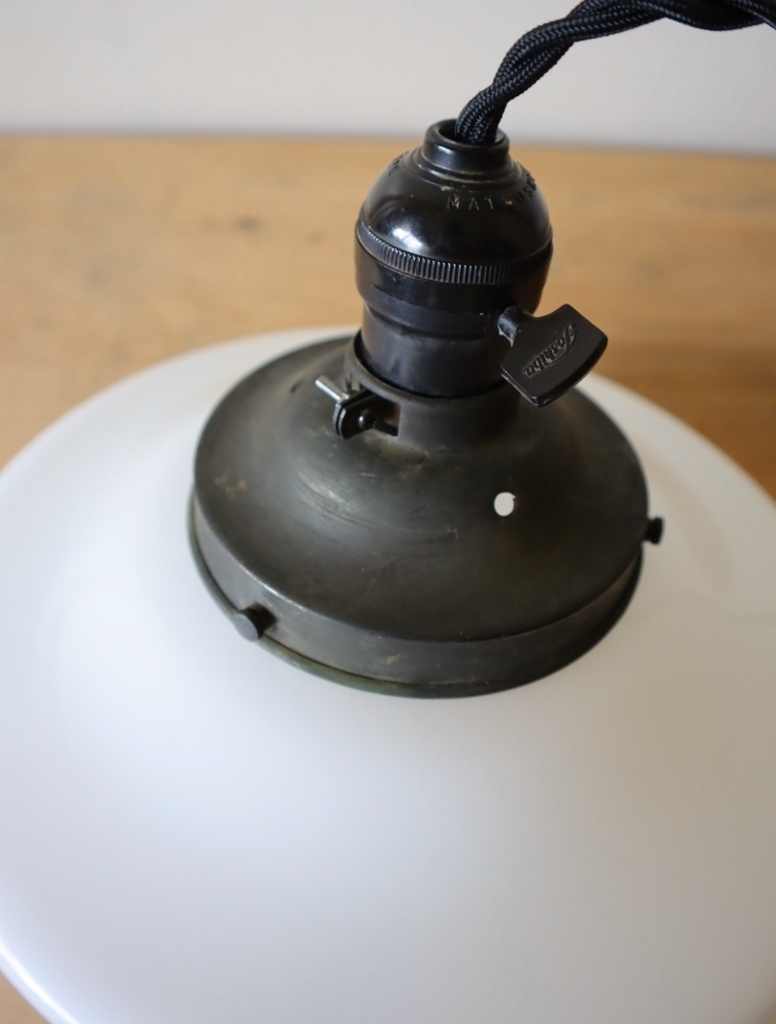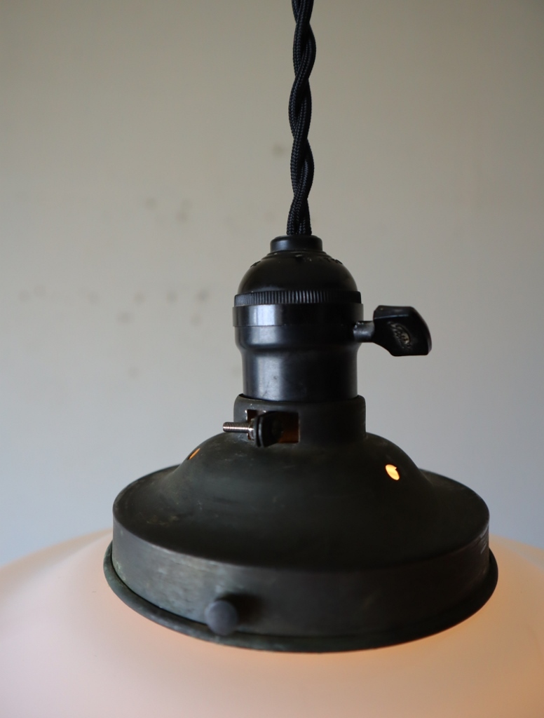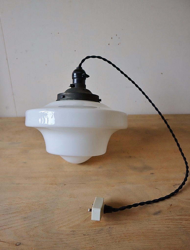 昭和期に使われていた程よい大きさでカタチの綺麗な古い乳白ガラスのシェードが付いた吊り下げライトになります。