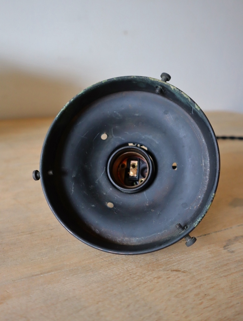 シェードのガラスは厚手で造られており、シェードホルダーは渋り色合いに経年変化した真鍮製になります。