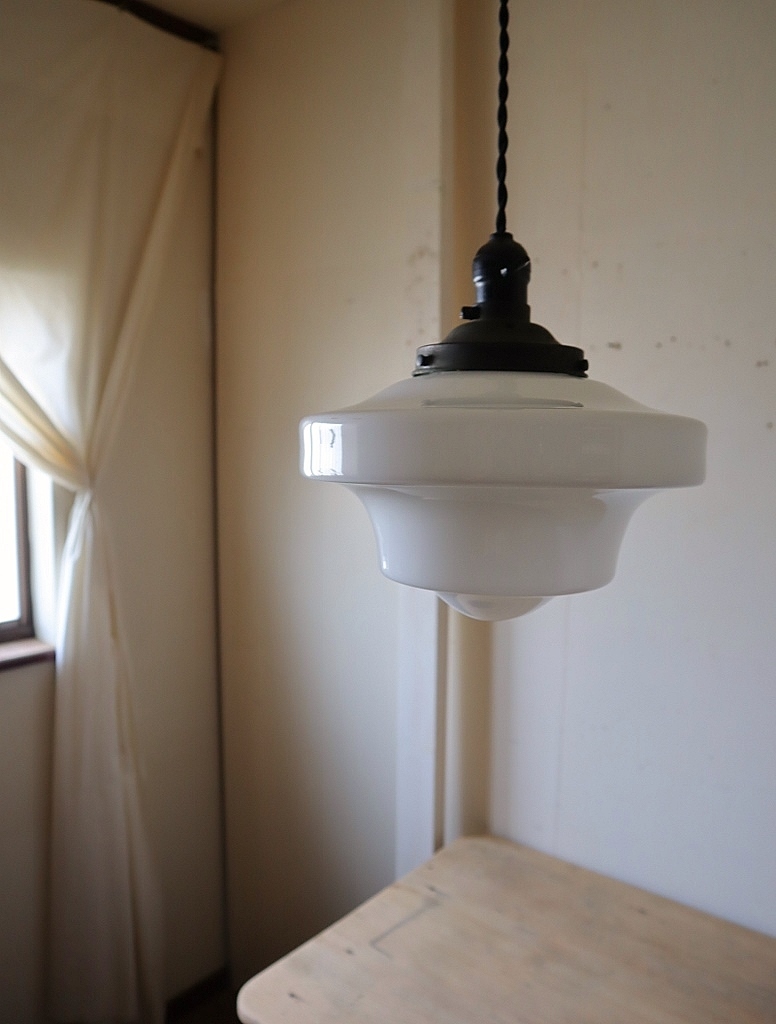 No.9 カタチの綺麗な乳白シェードの吊り下げライト