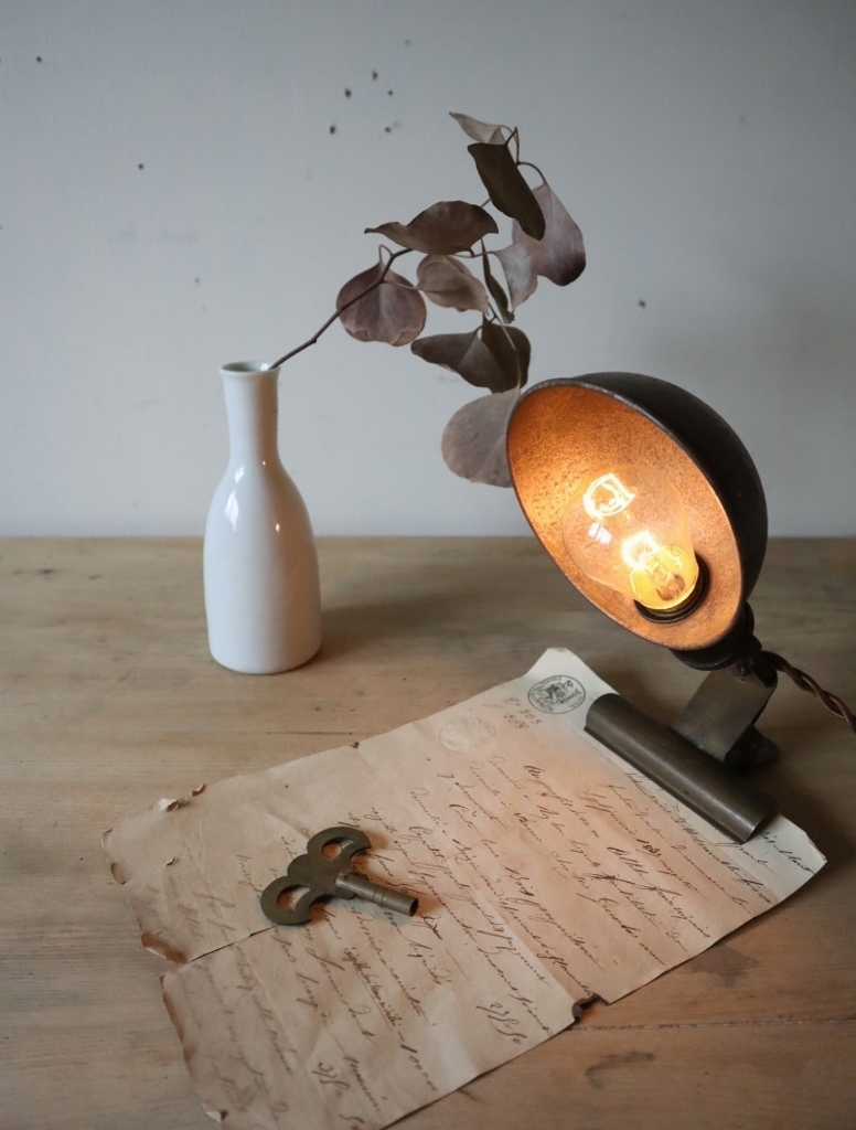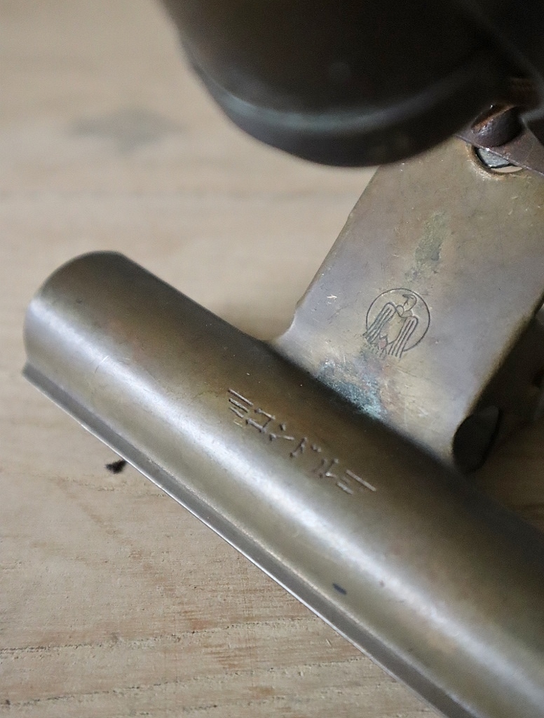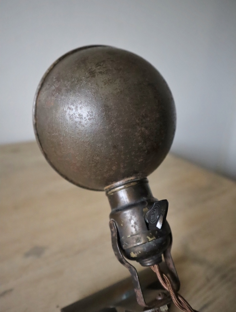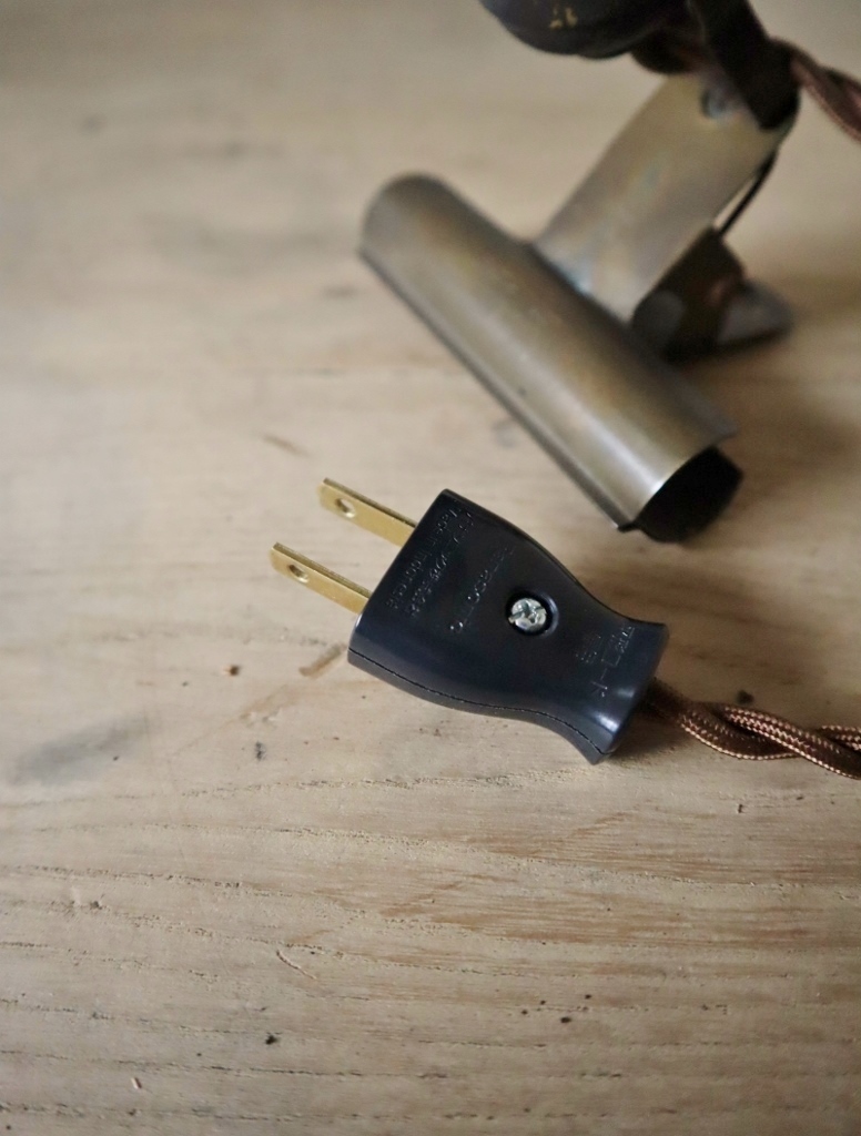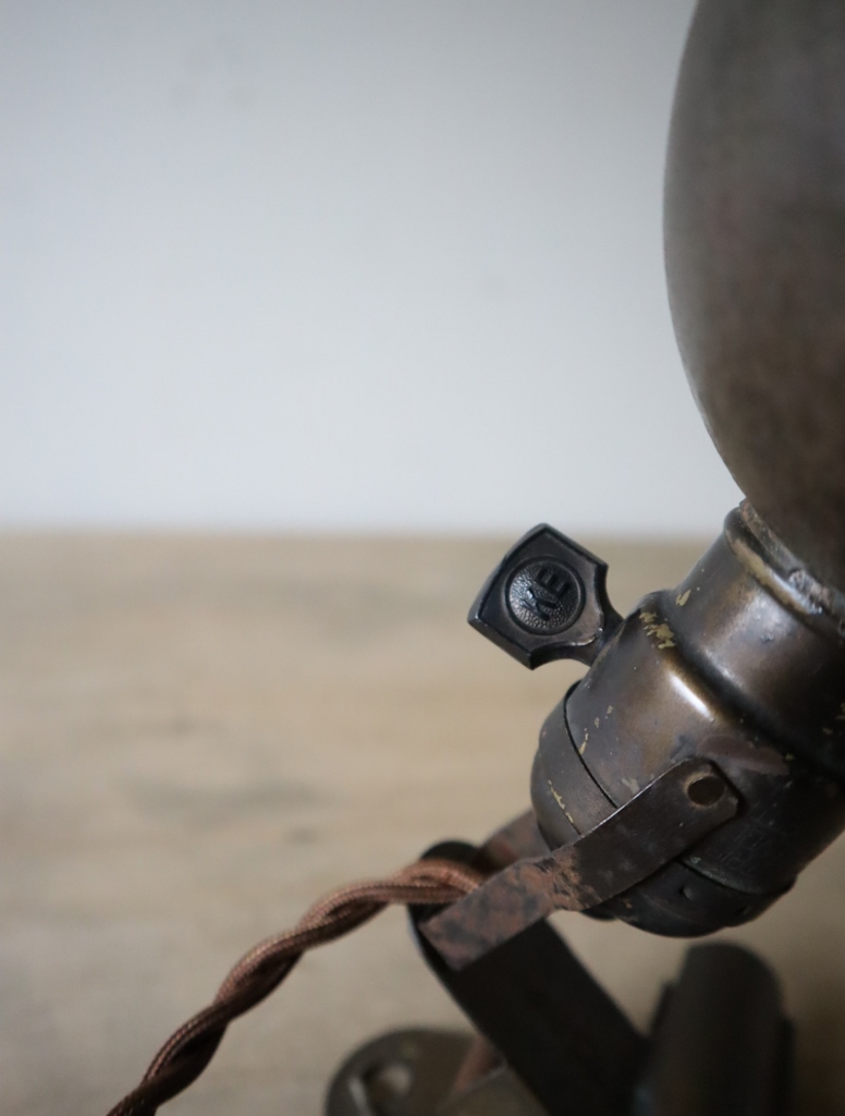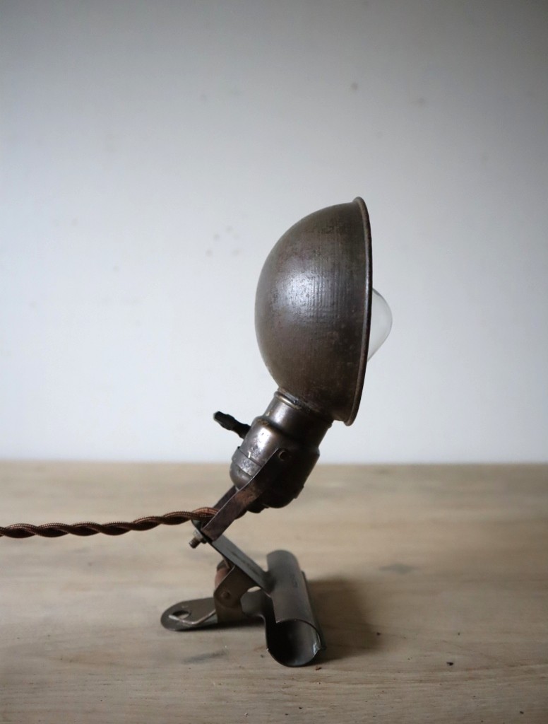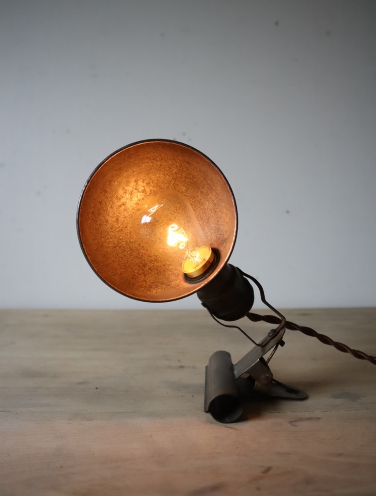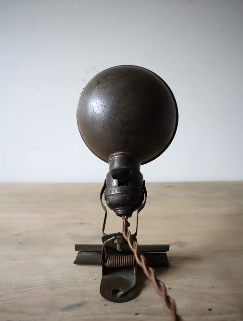 古い味のある小型のライトに、当方手持ちの真鍮のクリップ(コンドル印)を取り付けた3WAYライトになります。
