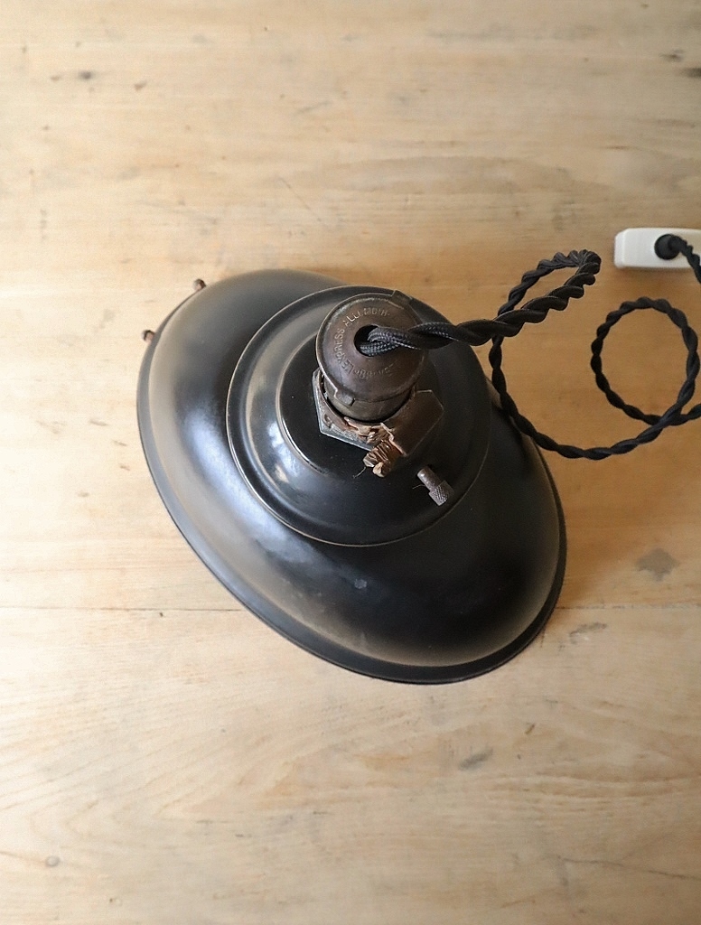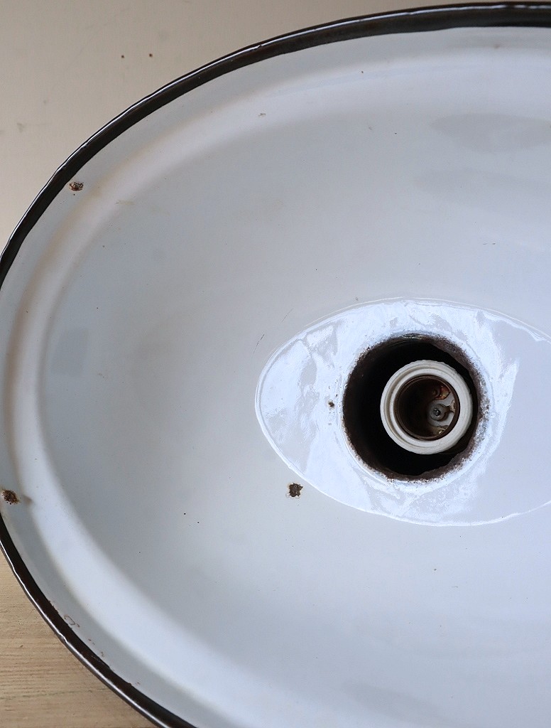 あまり見かけないオーバル型をした琺瑯製のペンダントライトになります。