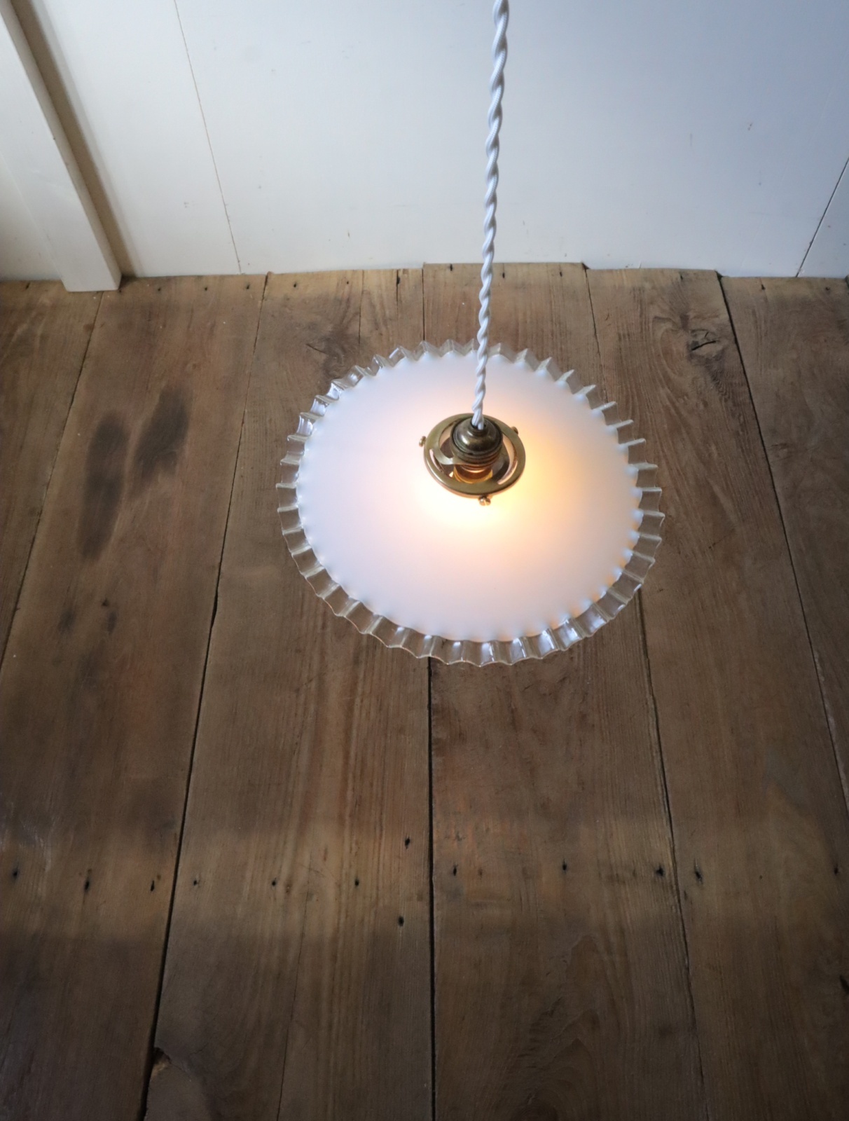 シェードはフリル部分が透明、他は乳白のミルクガラスになっています。