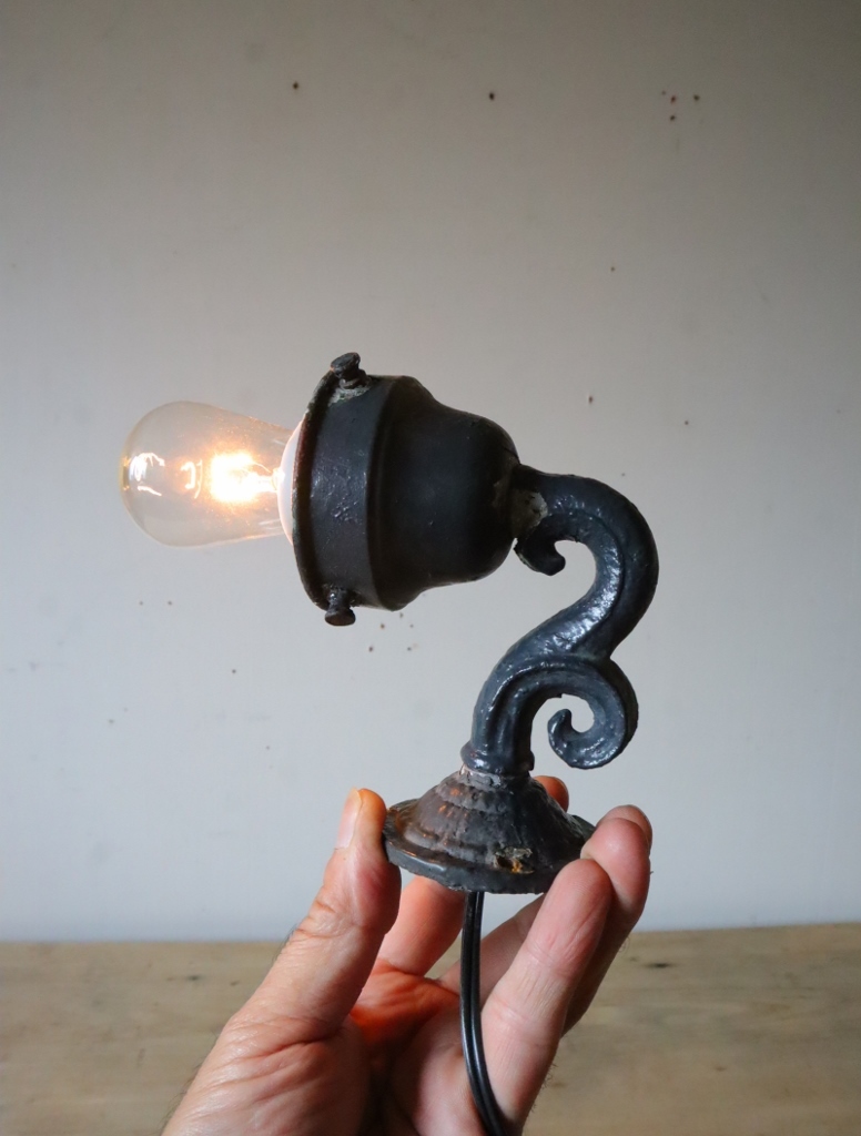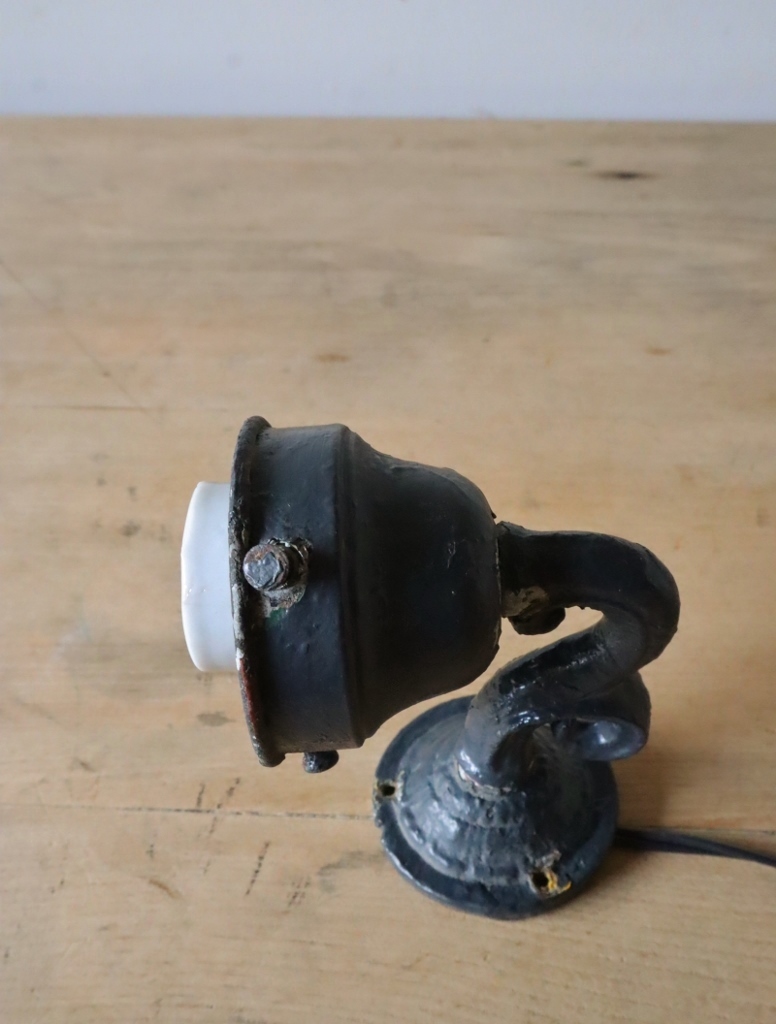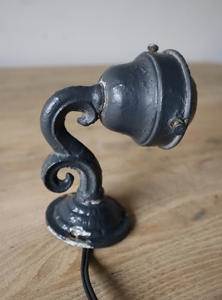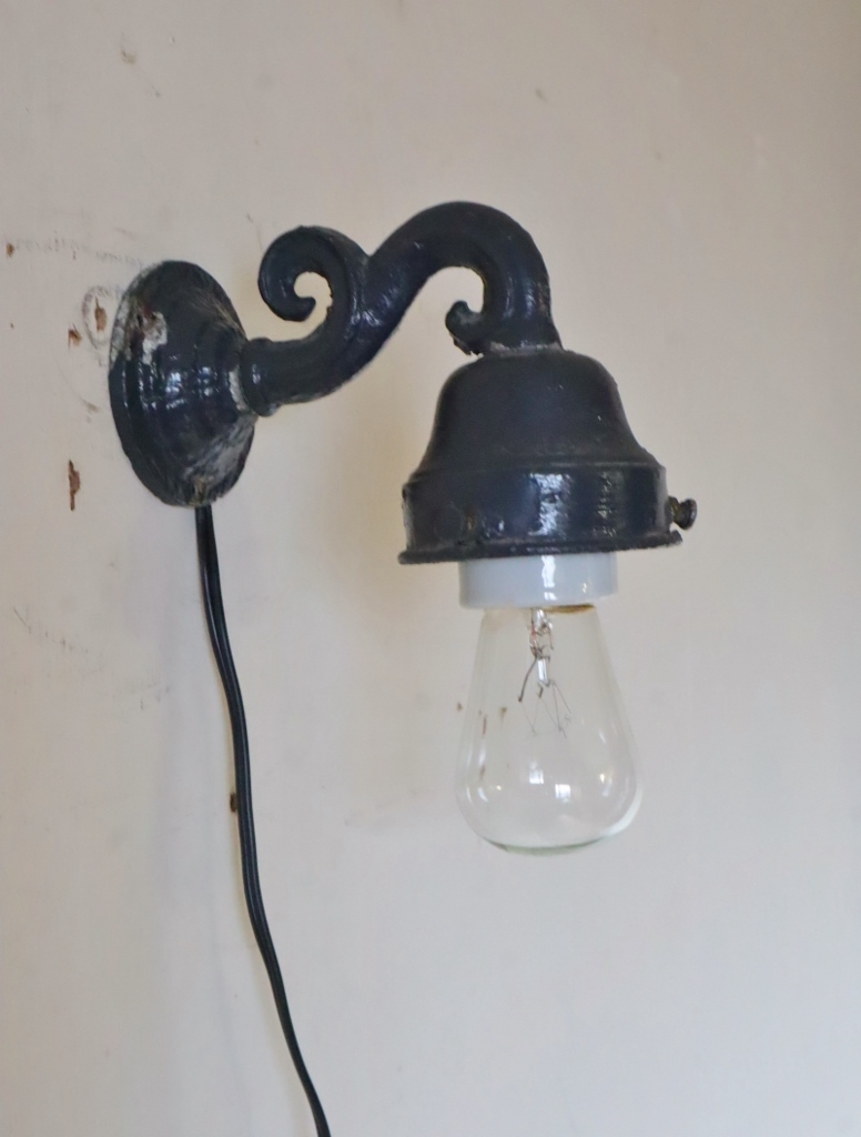 ブルーグレー色にペイントされた古いブラケットライトになります。