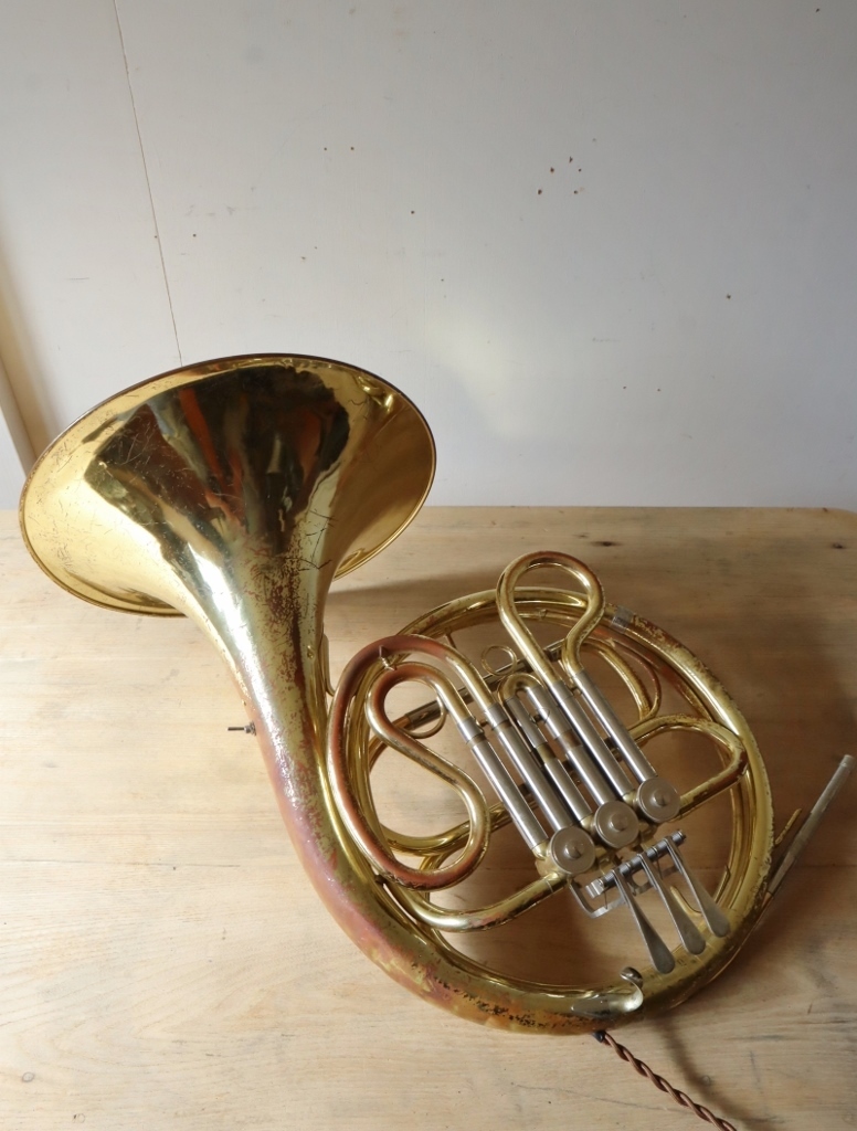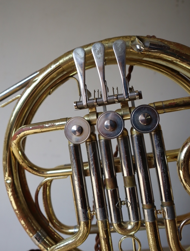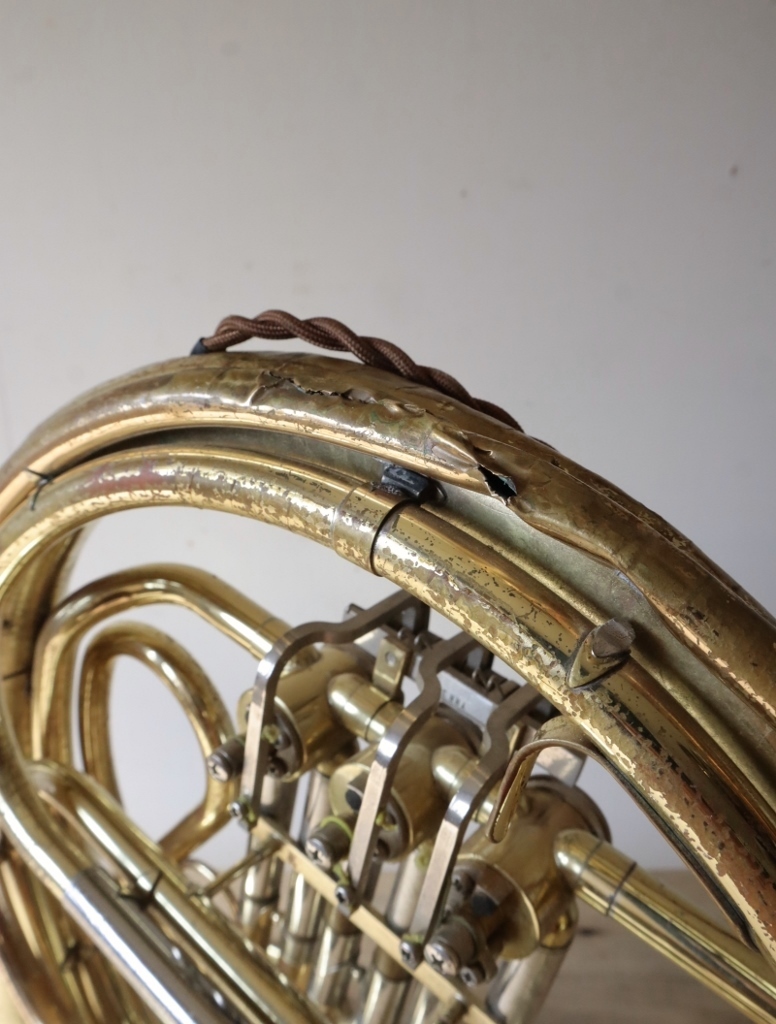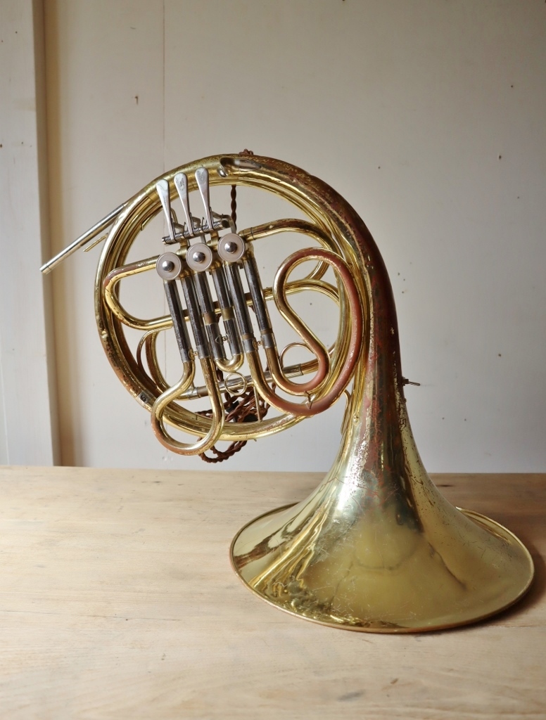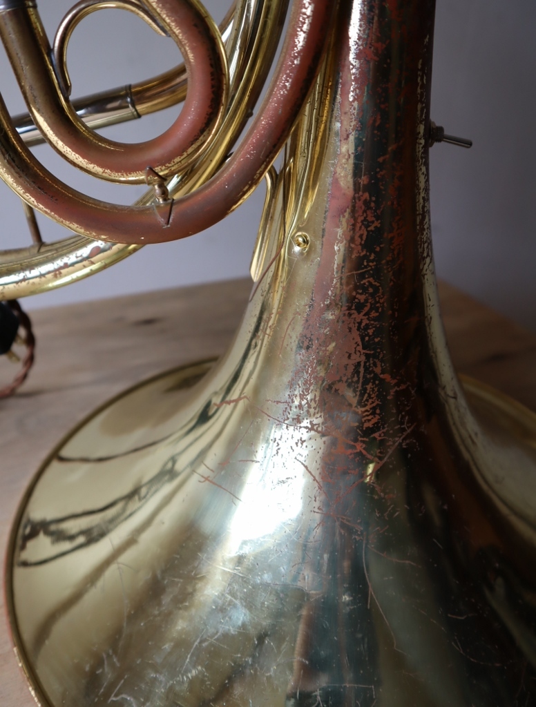 ホルンは古いモノになります。スレ、キズ、ヘコミ、歪み、穴、サビ、ヨゴレ等があります。