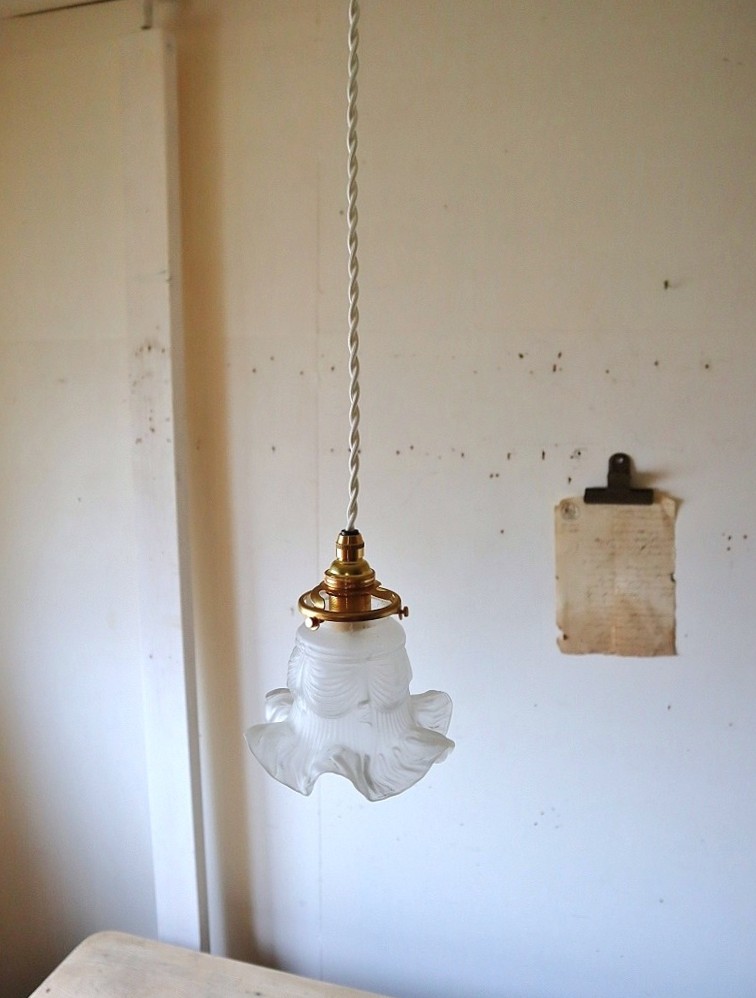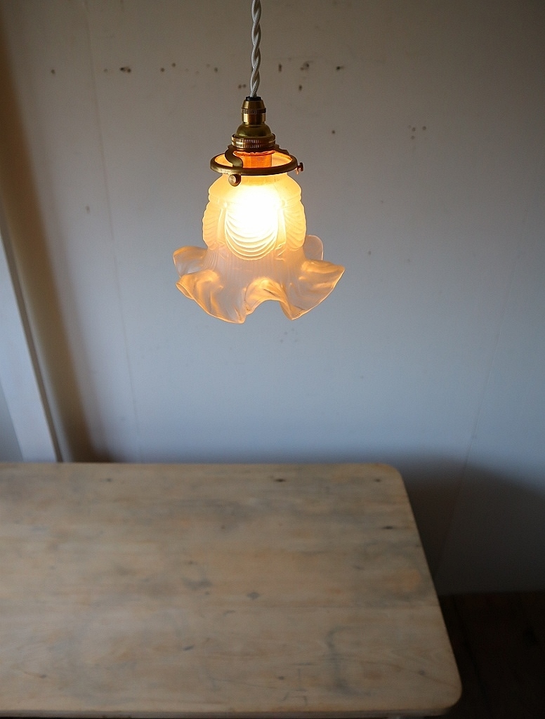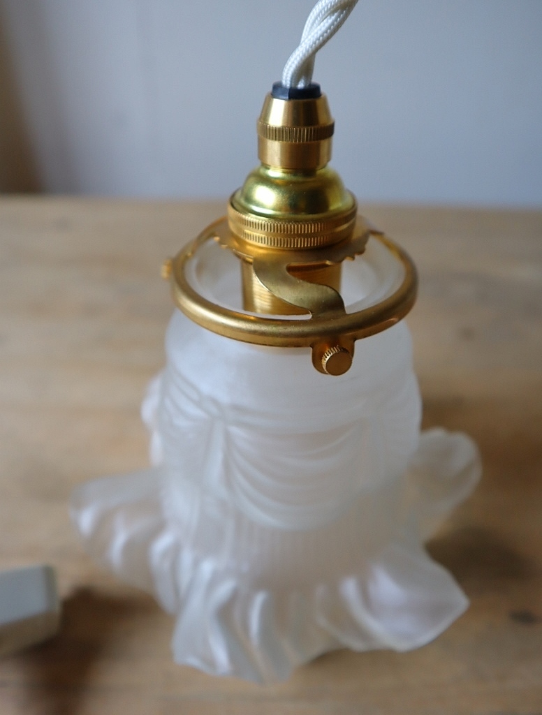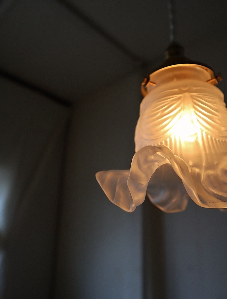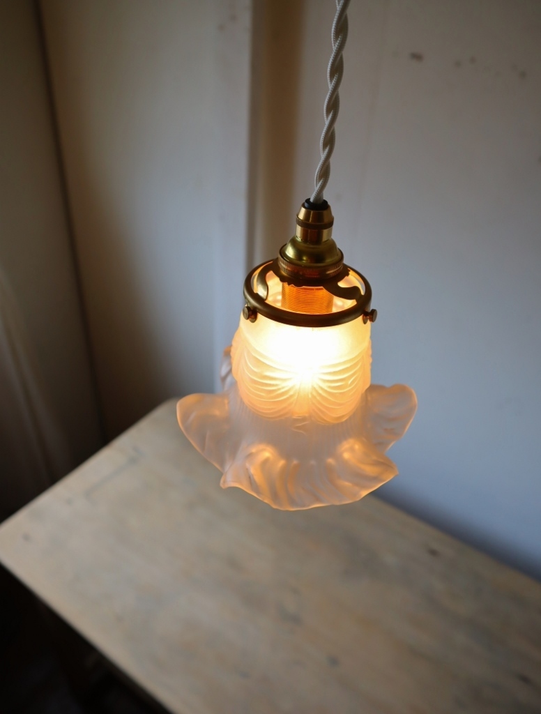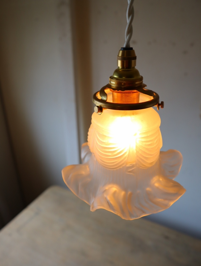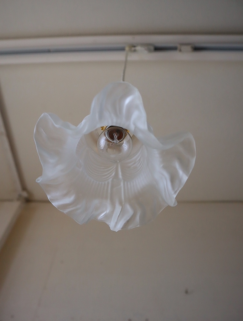 フランス製の古い花びら型のシェードが付いたペンダントライトになります。