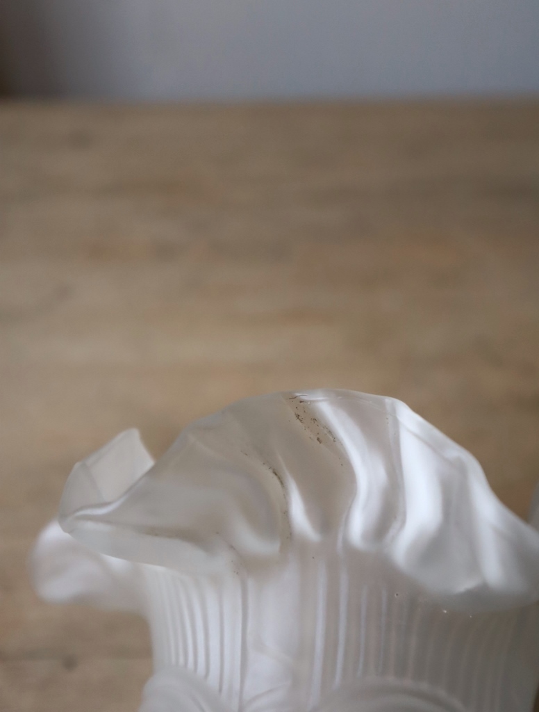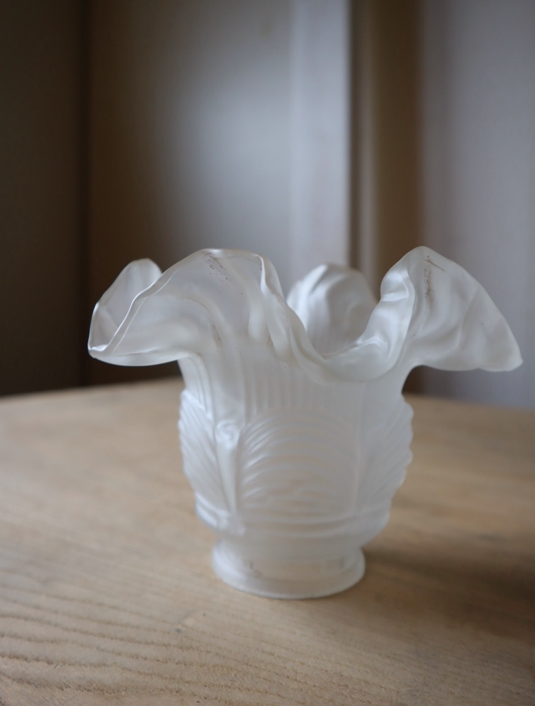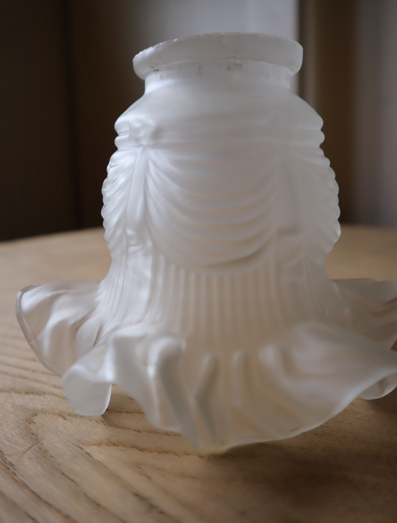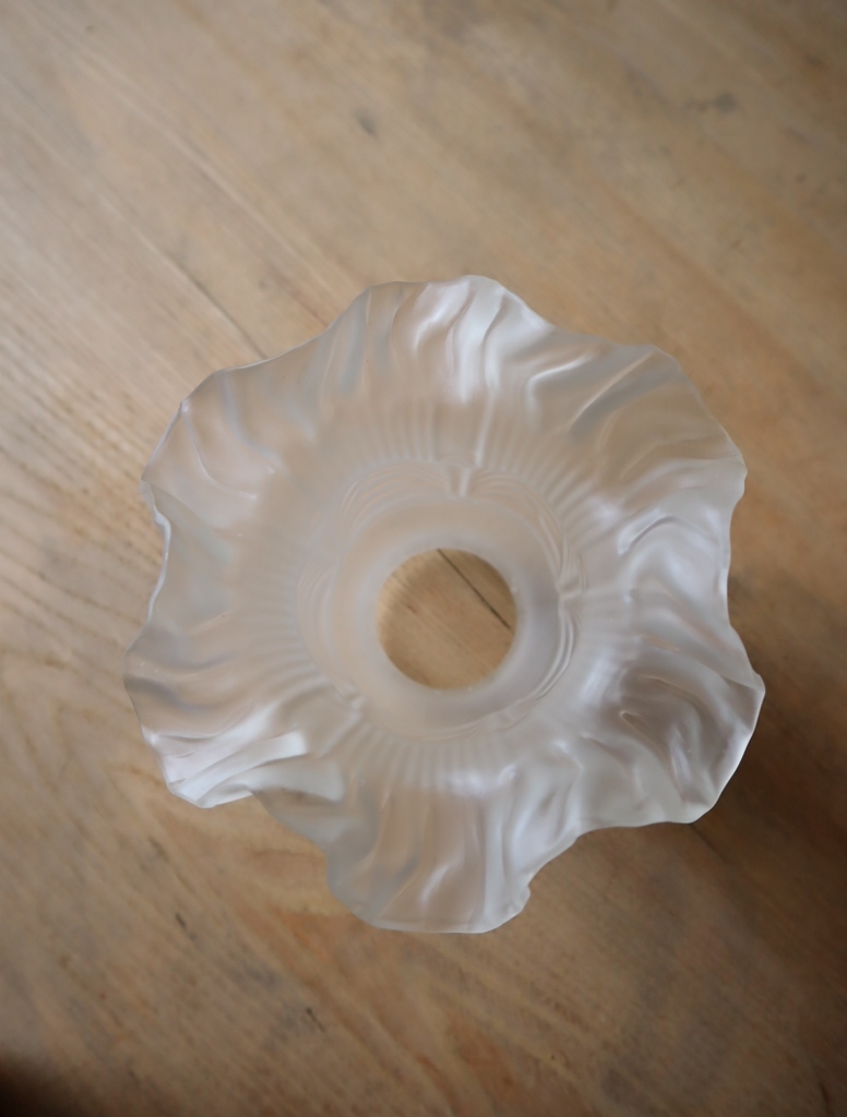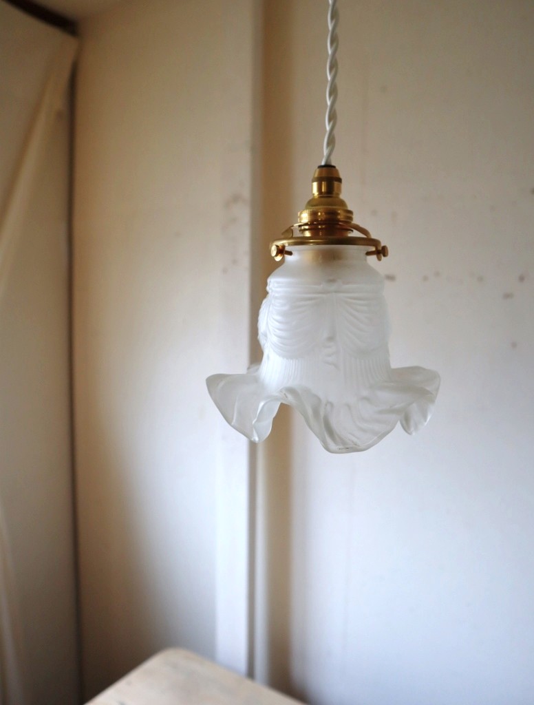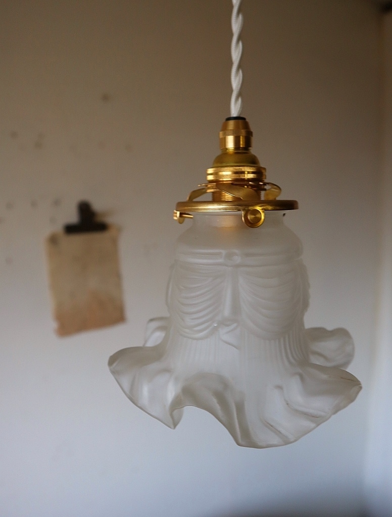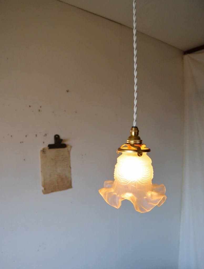フランス製の古い花びら型のシェードが付いたペンダントライトになります。