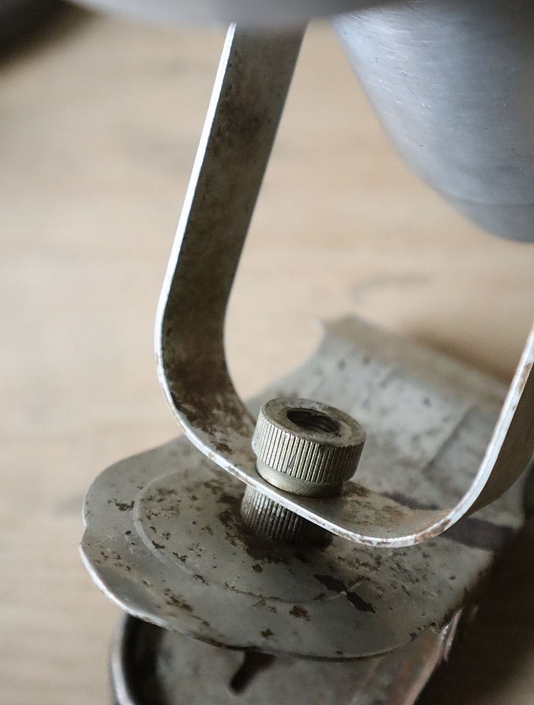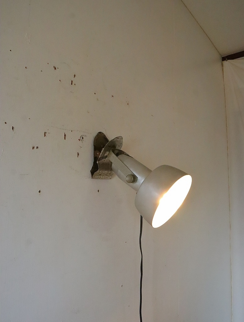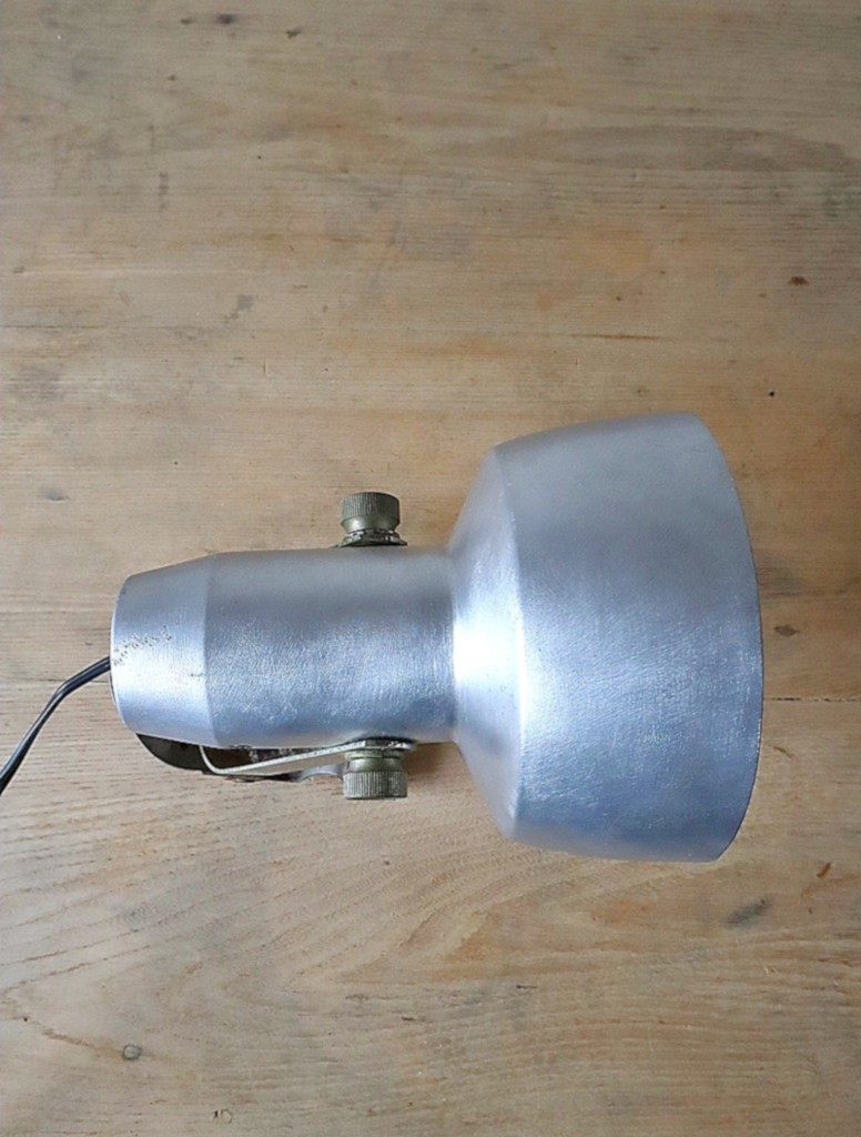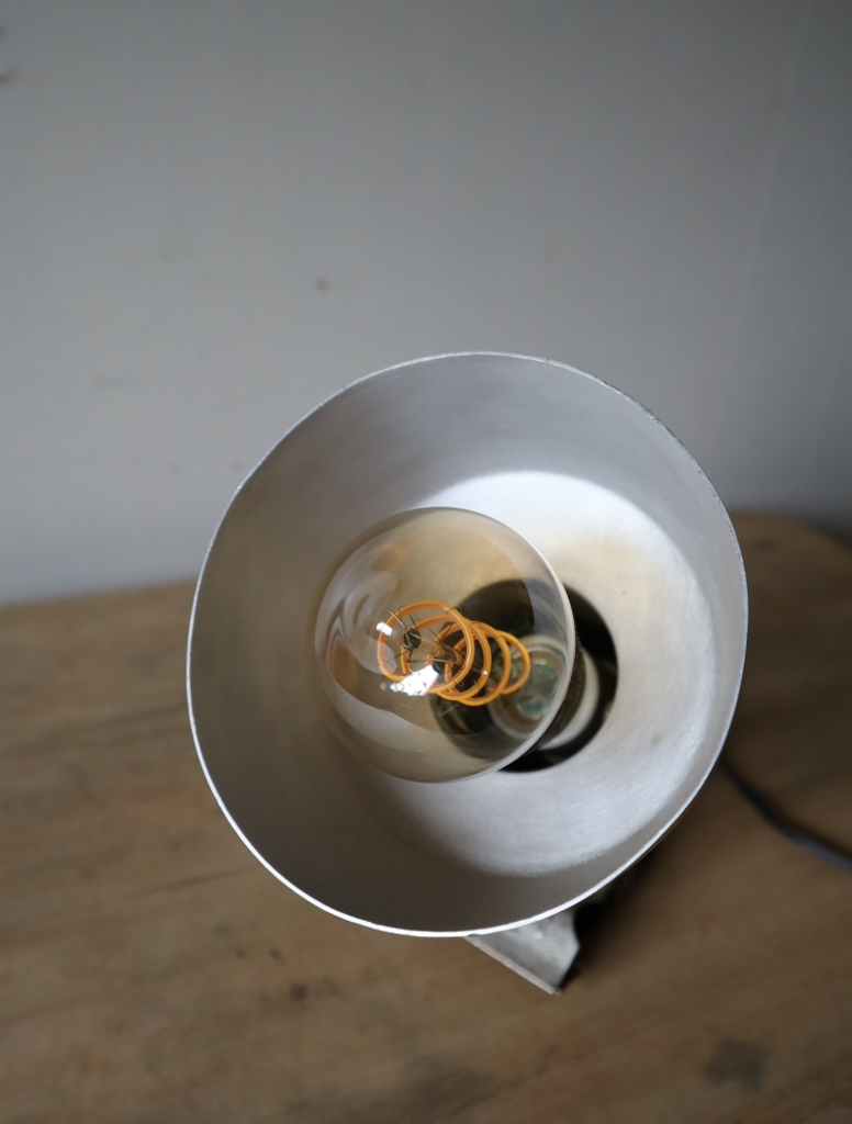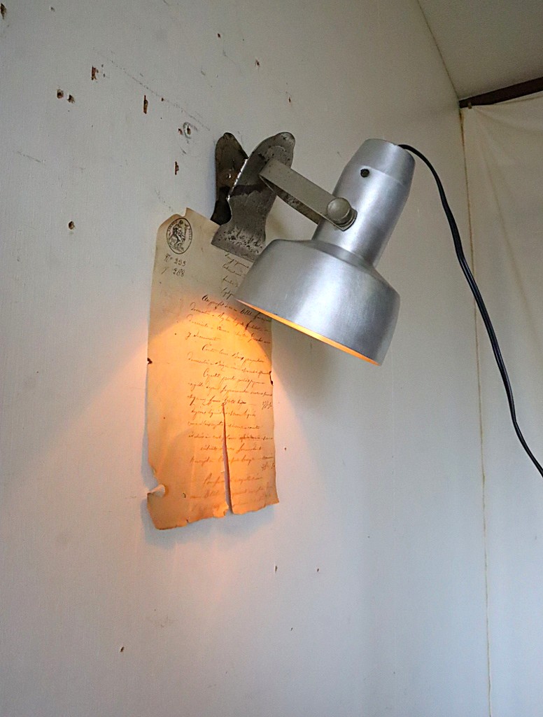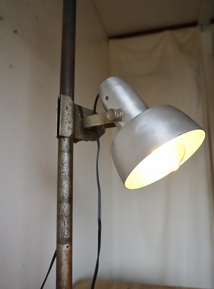 壁掛け、挟む、置くの3通りの使い方が出来るクリップ付きの古いスポットライトになります。