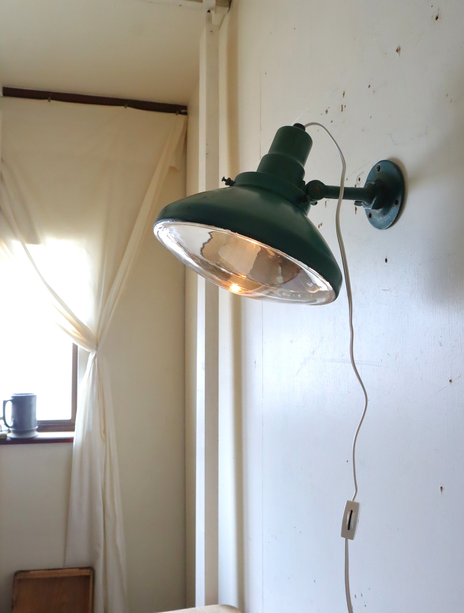 古いマツダ製(旧東京電気株式会社、現東芝)のグリーン色のブラケットライトになります。