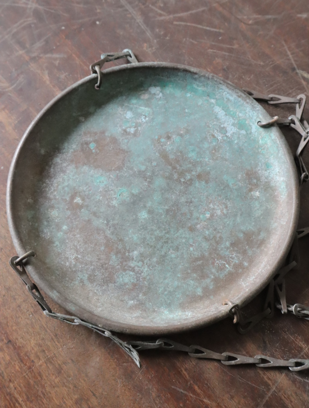 皿とチェーンは真鍮製になります。経年により渋り色合いに変化しています。