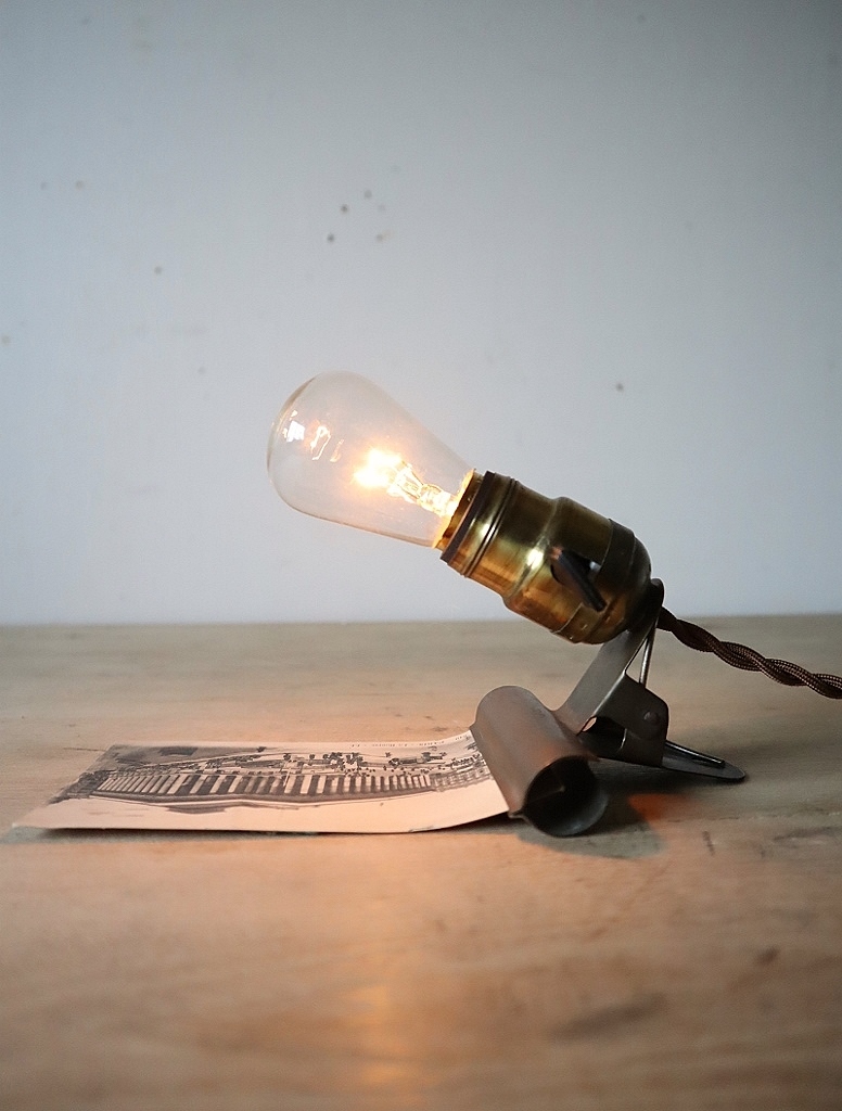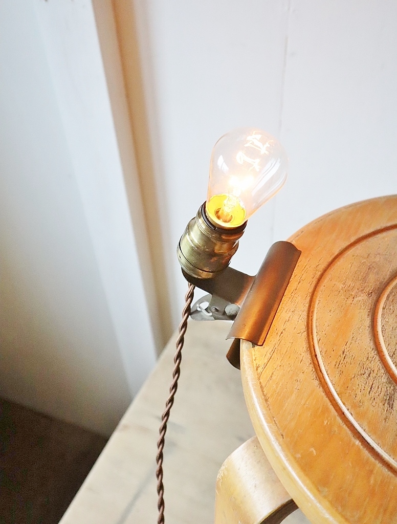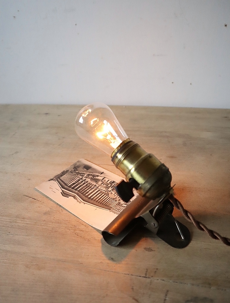 古いアメリカ製の真鍮ソケットと日本の古い真鍮製のクリップ(コンドル印)を組み合わせた2wayライトになります。
