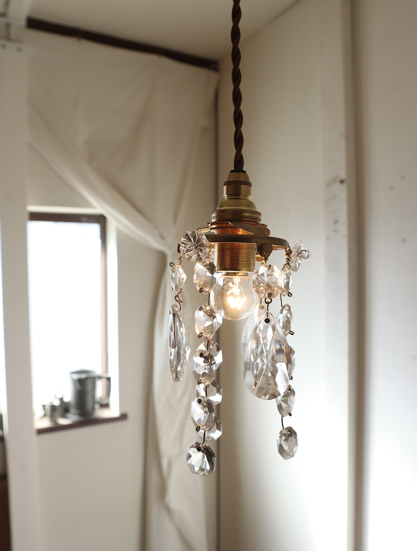 フランスの古い大きなシャンデリアを分解してパーツを取り外し、そのパーツを使って