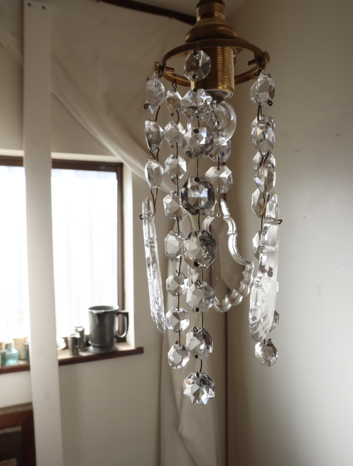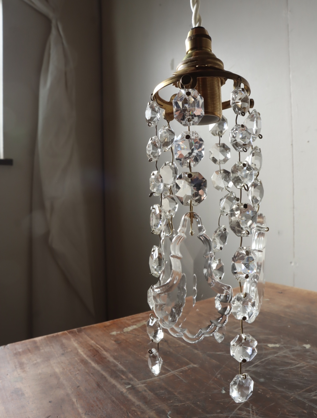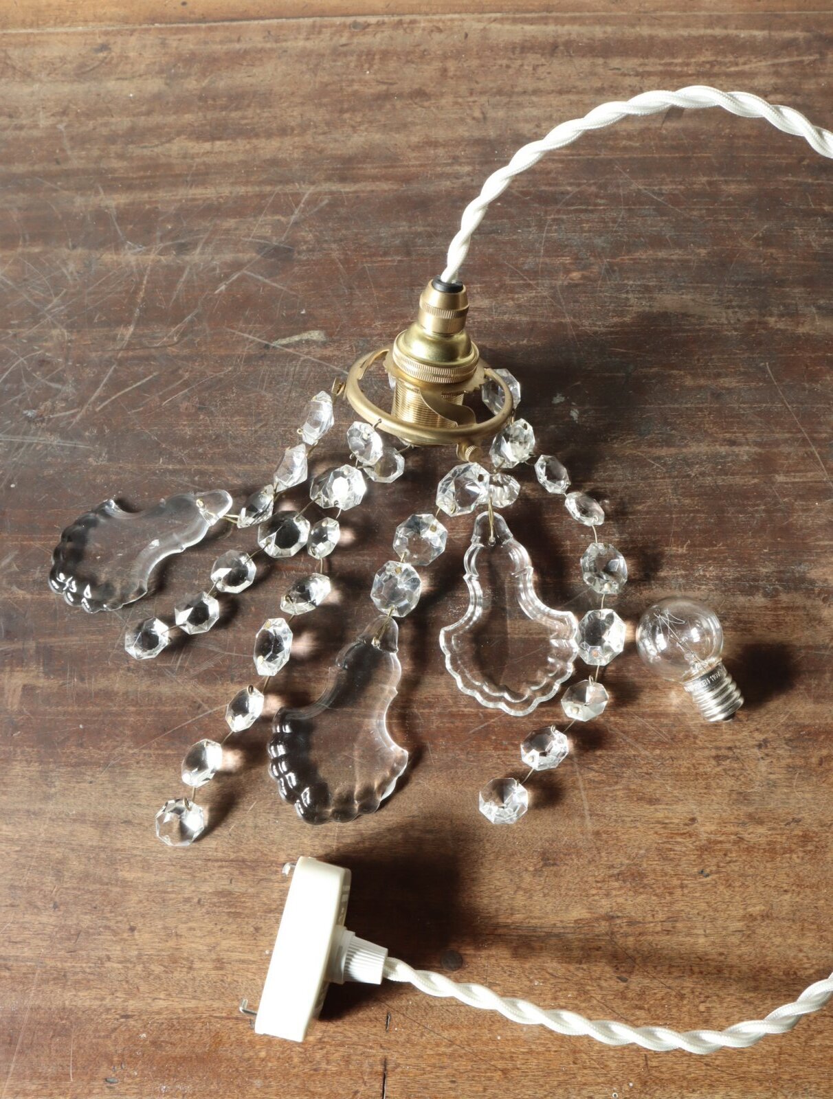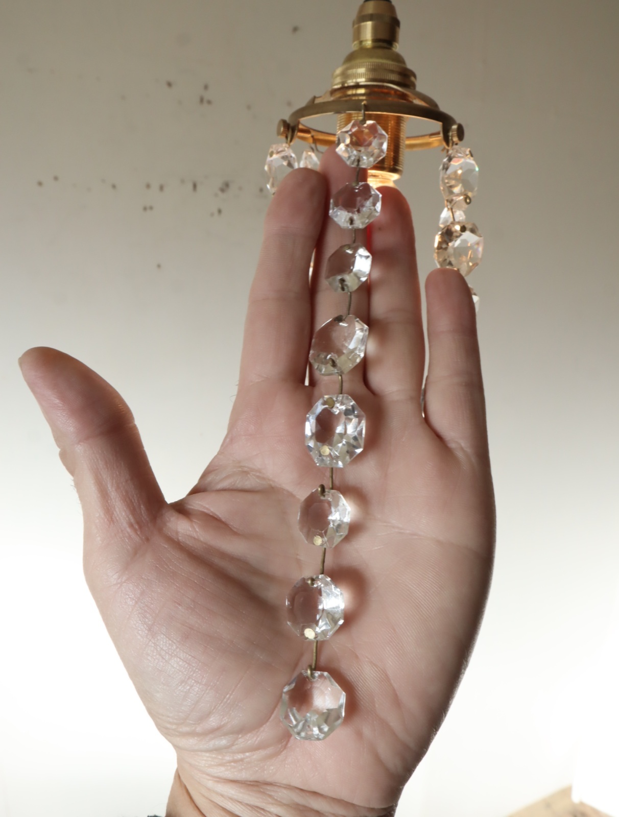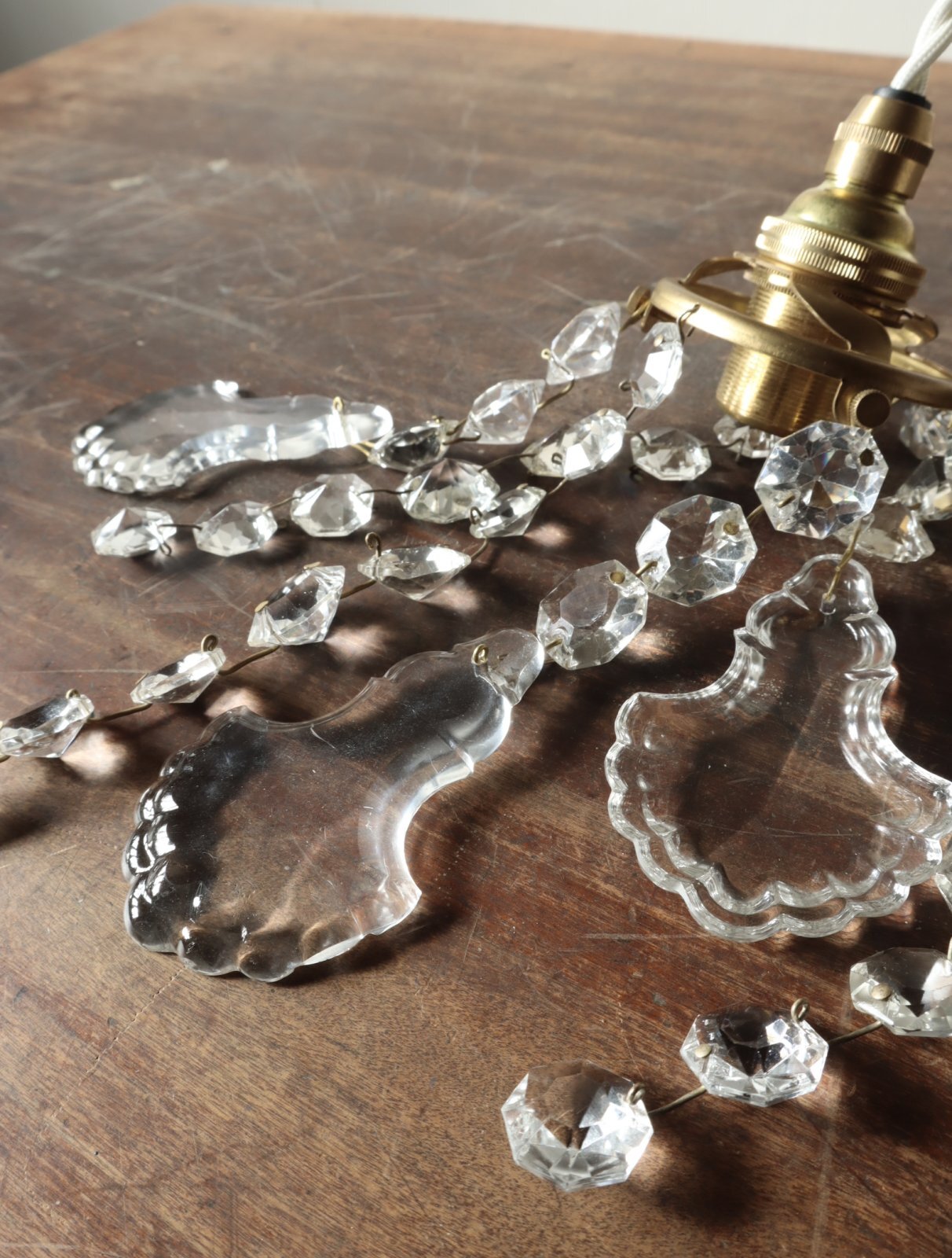 フランスの古い大きなシャンデリアを分解してパーツを取り外し、そのパーツを使って