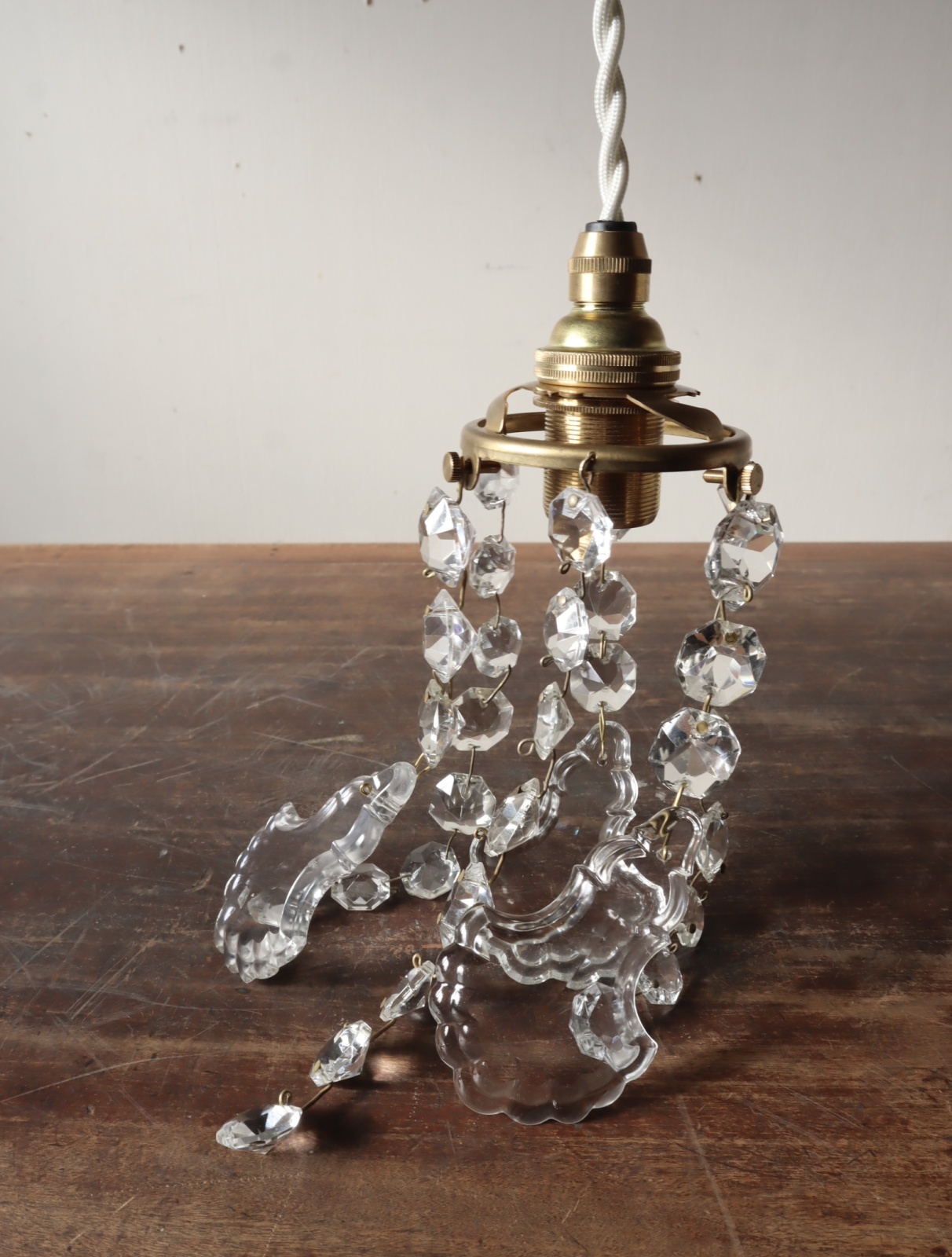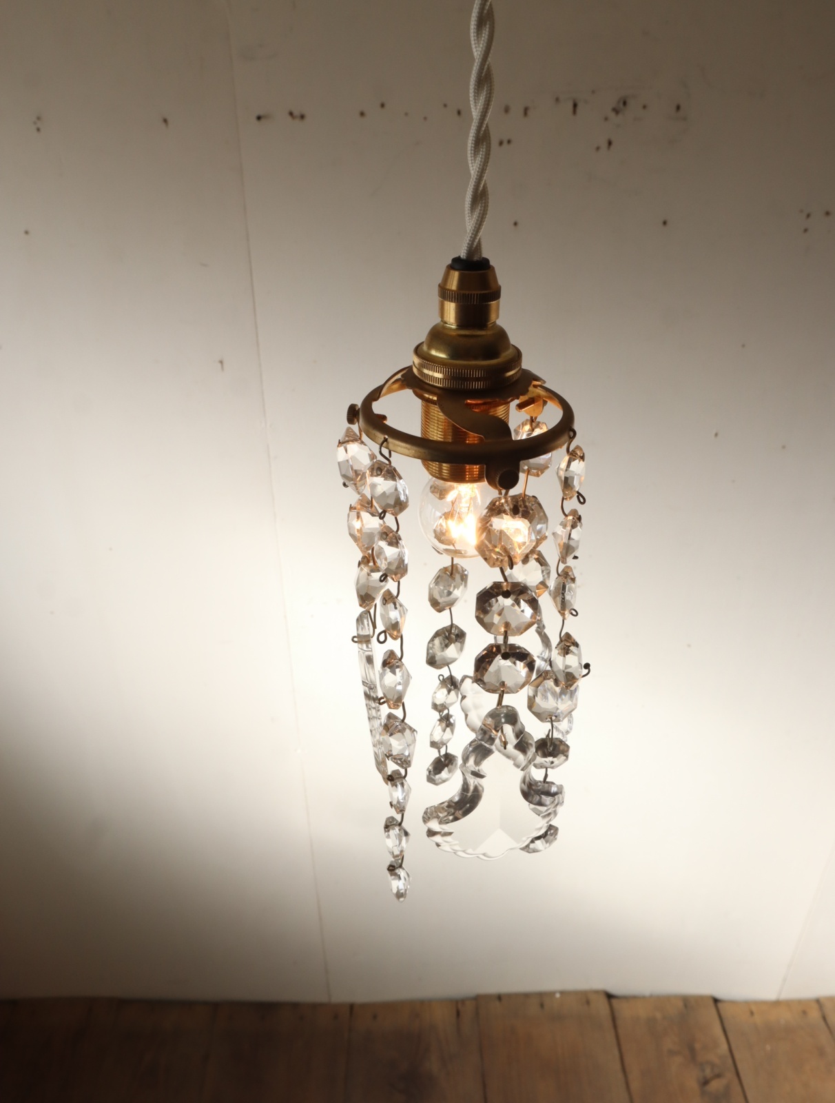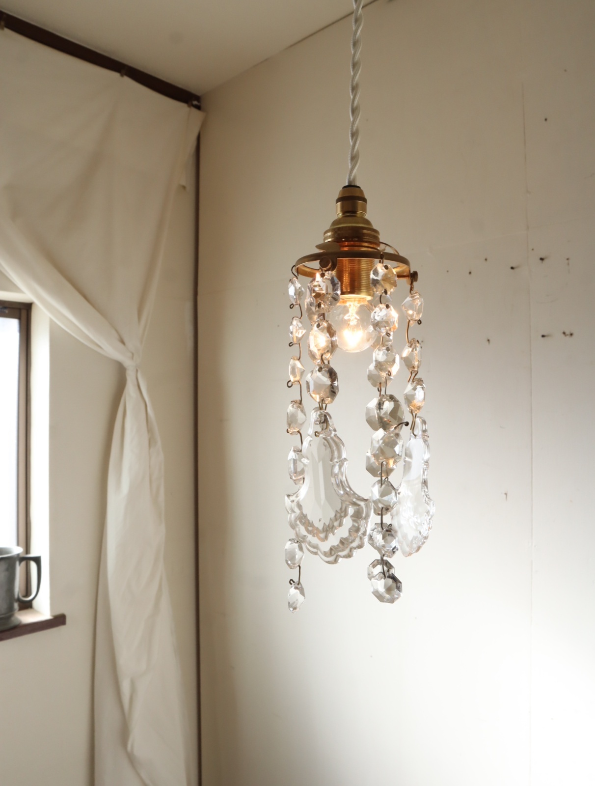 ミニシャンデリアのペンダントライトに仕立てました。
