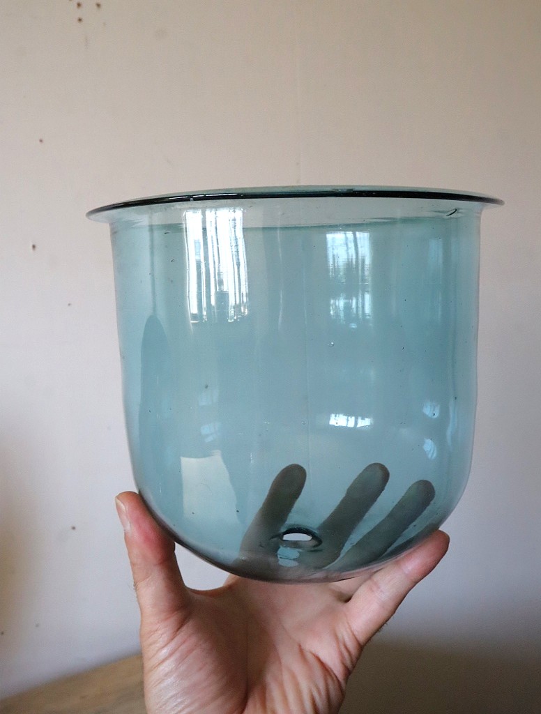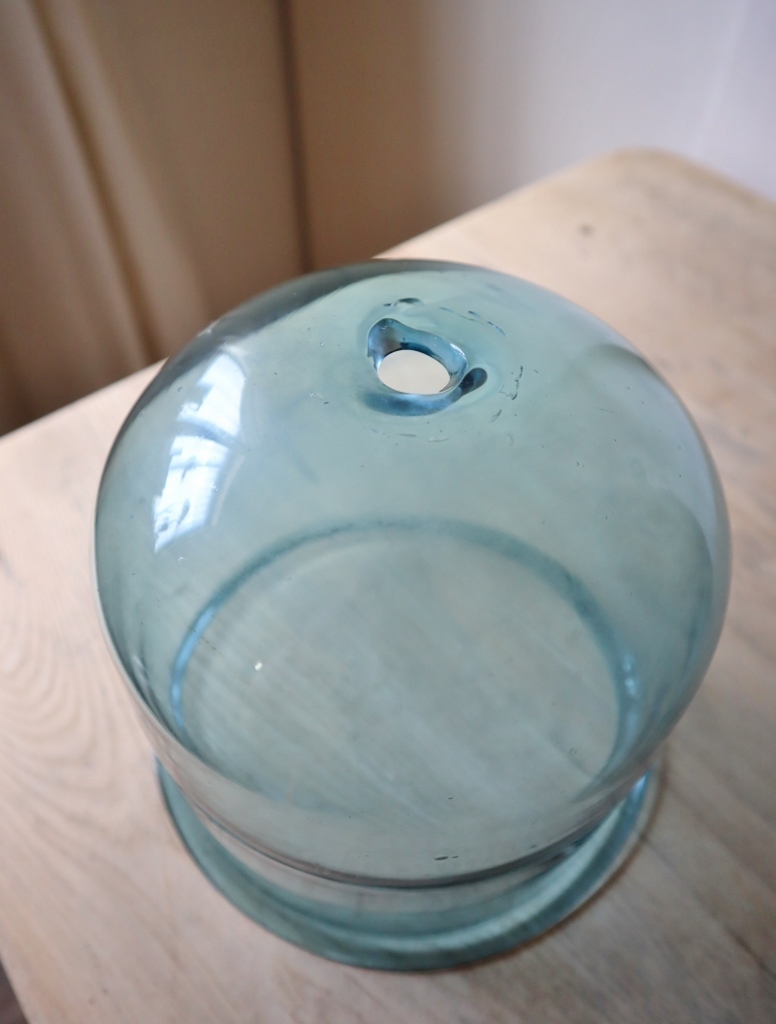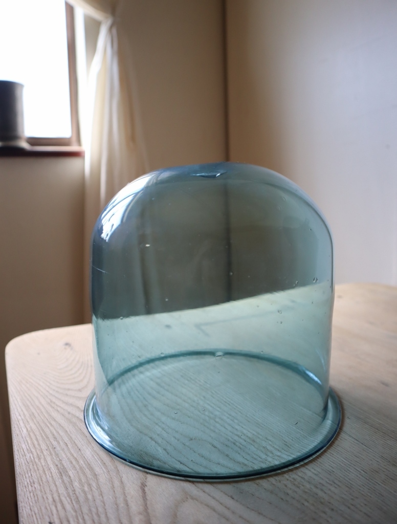 透明のガラスが付いたものは見かけたことがありますが青色のガラスのモノは珍しいかと思います。