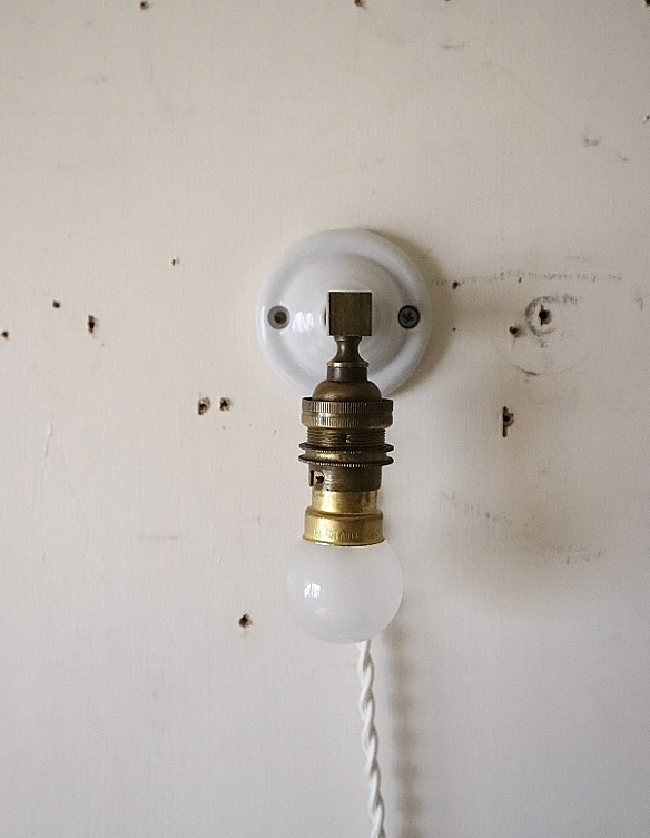 フランスの磁器製の台座にあまり見かけないL字型に真鍮製のソケットと金具が付いたデッドストックの壁付けのブラケットライトになります。