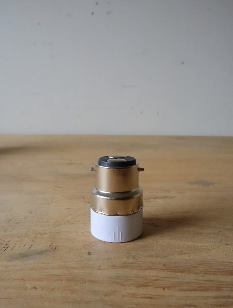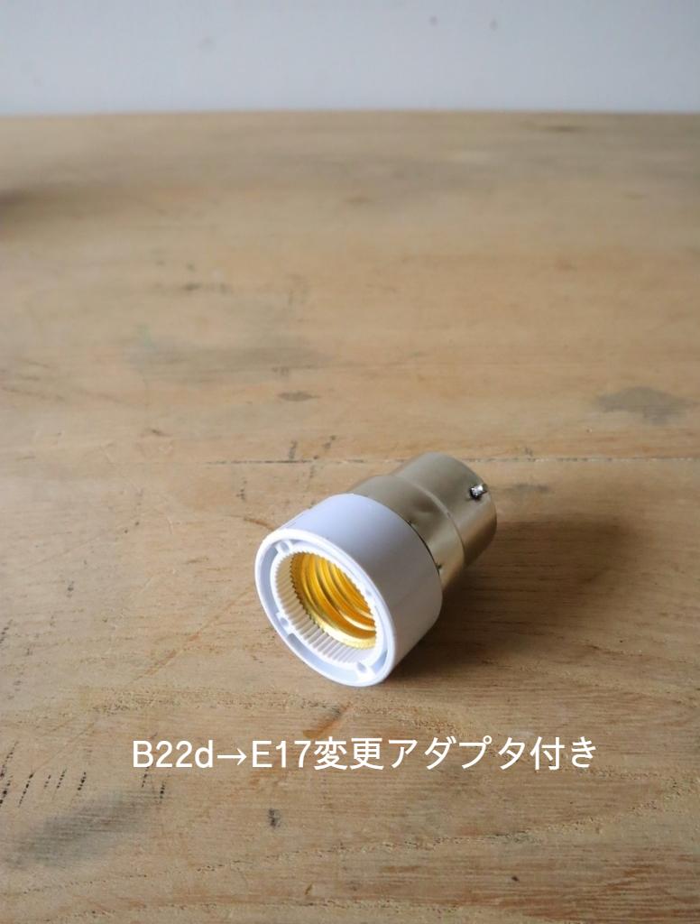 本来電球は口金サイズB22dのピン式の電球を使用しますが、シェードが細く窄まった形状のため取り付けしづらいので口金E17のネジ式の電球が使えるアダプタを付属いたします。