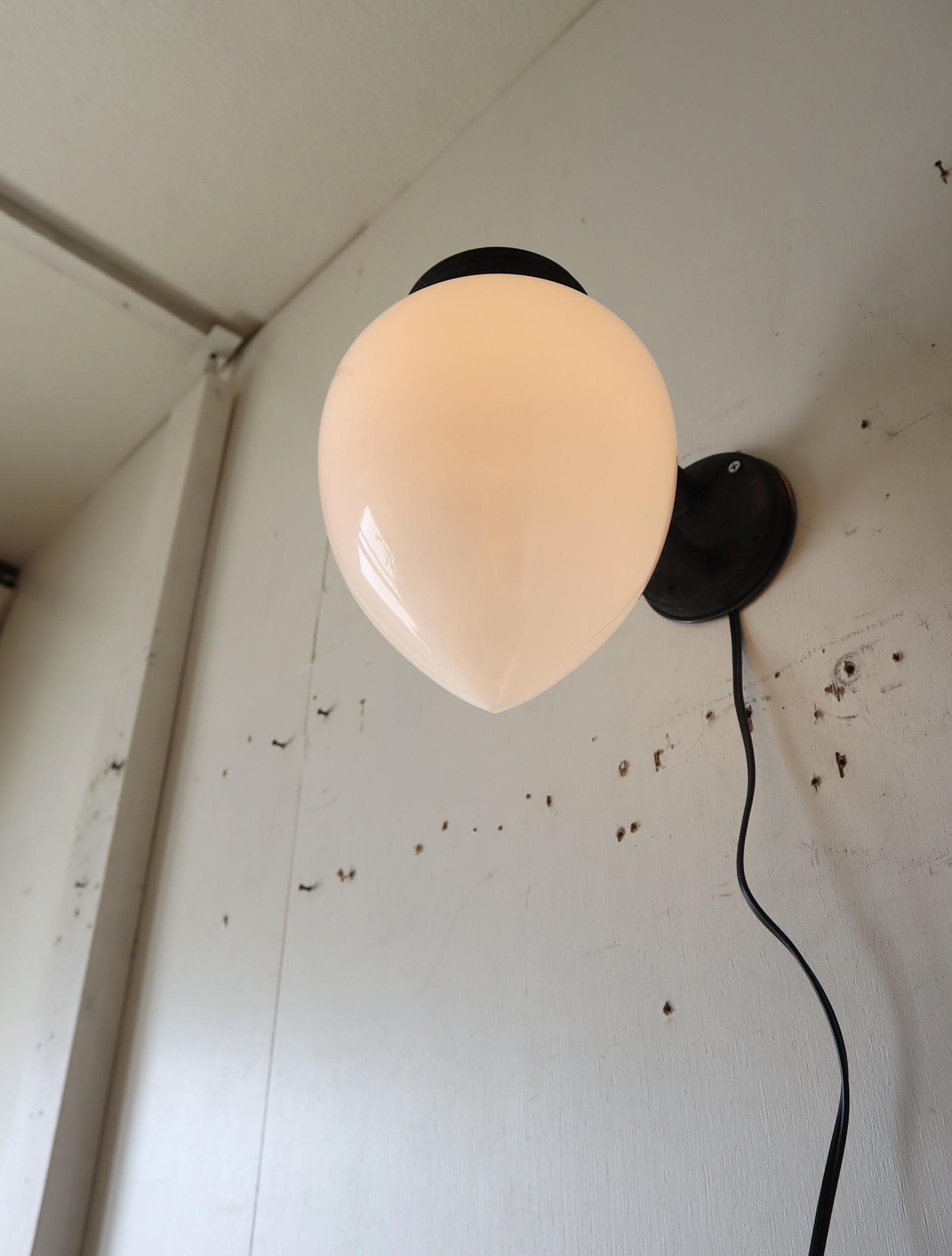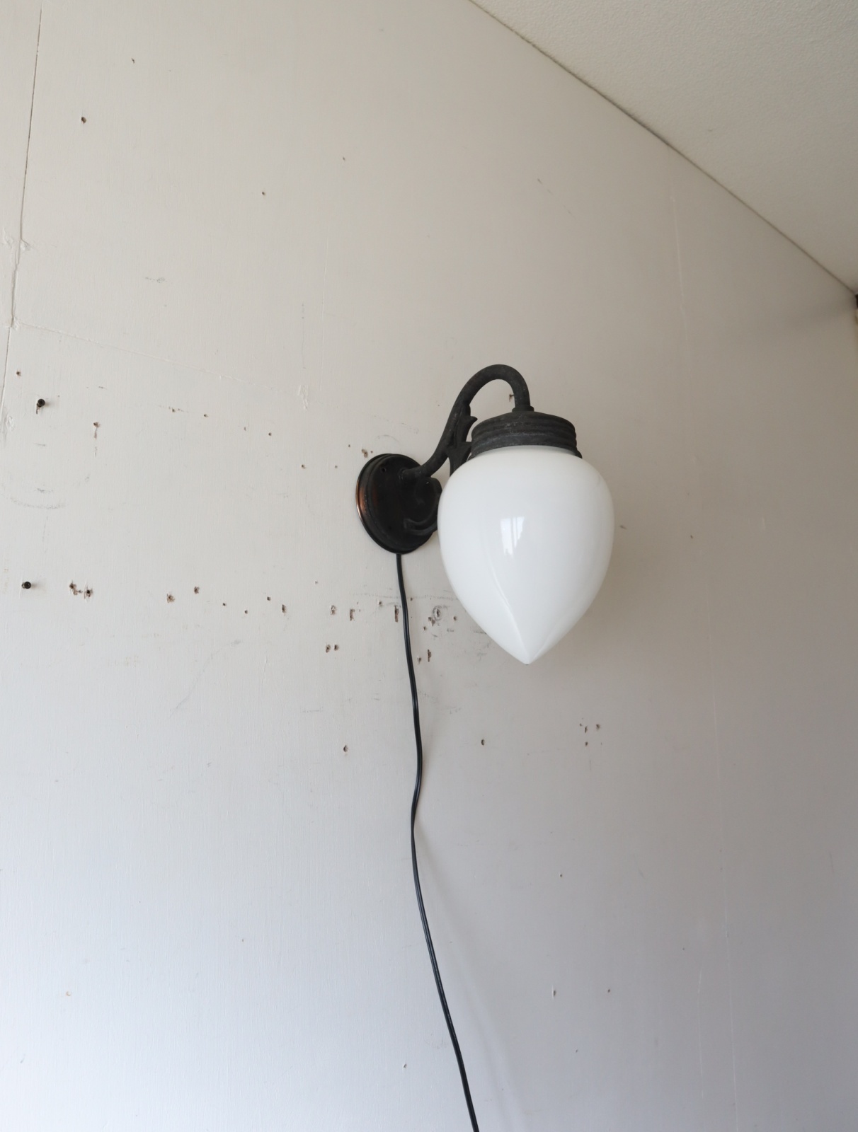 しずく型の乳白ガラスが付いた古いブラケットライトになります。