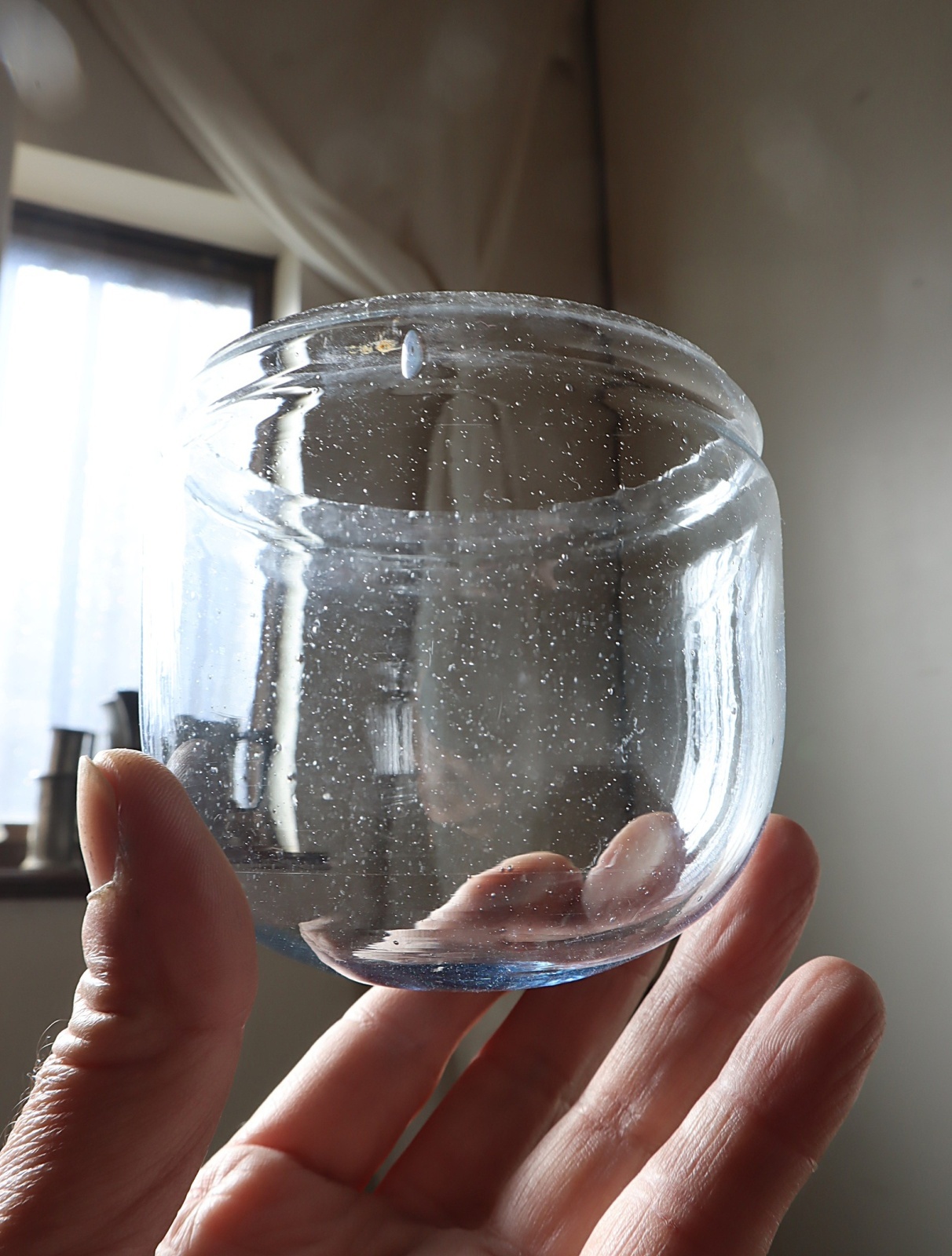 ガラスは長期保管の未使用品です。薄造りで細かい気泡がたくさん入り、揺らぎがあります。
