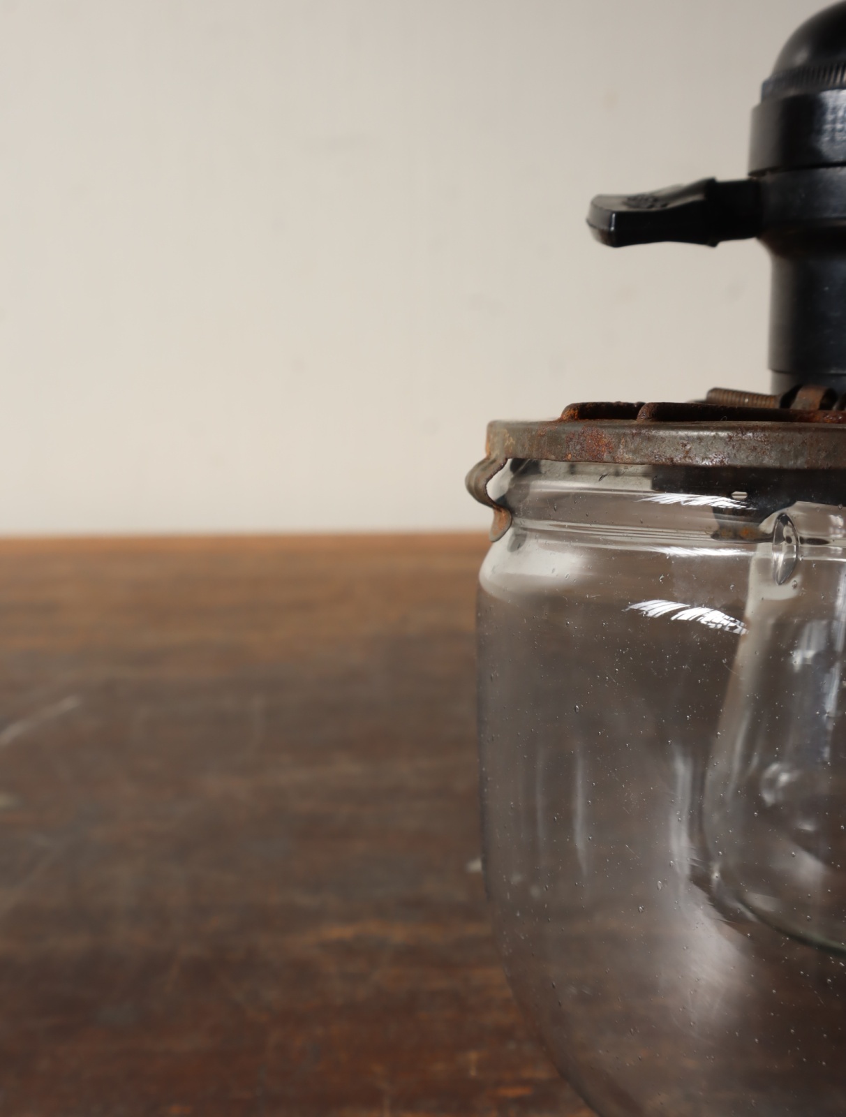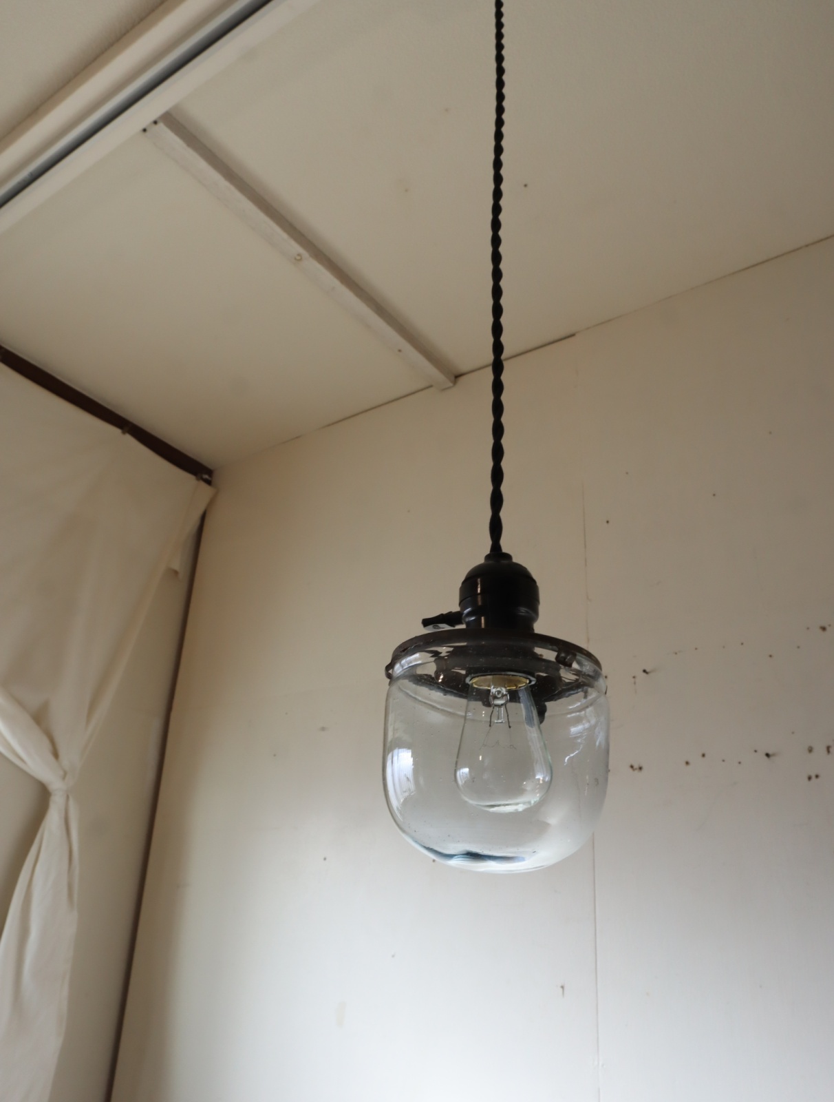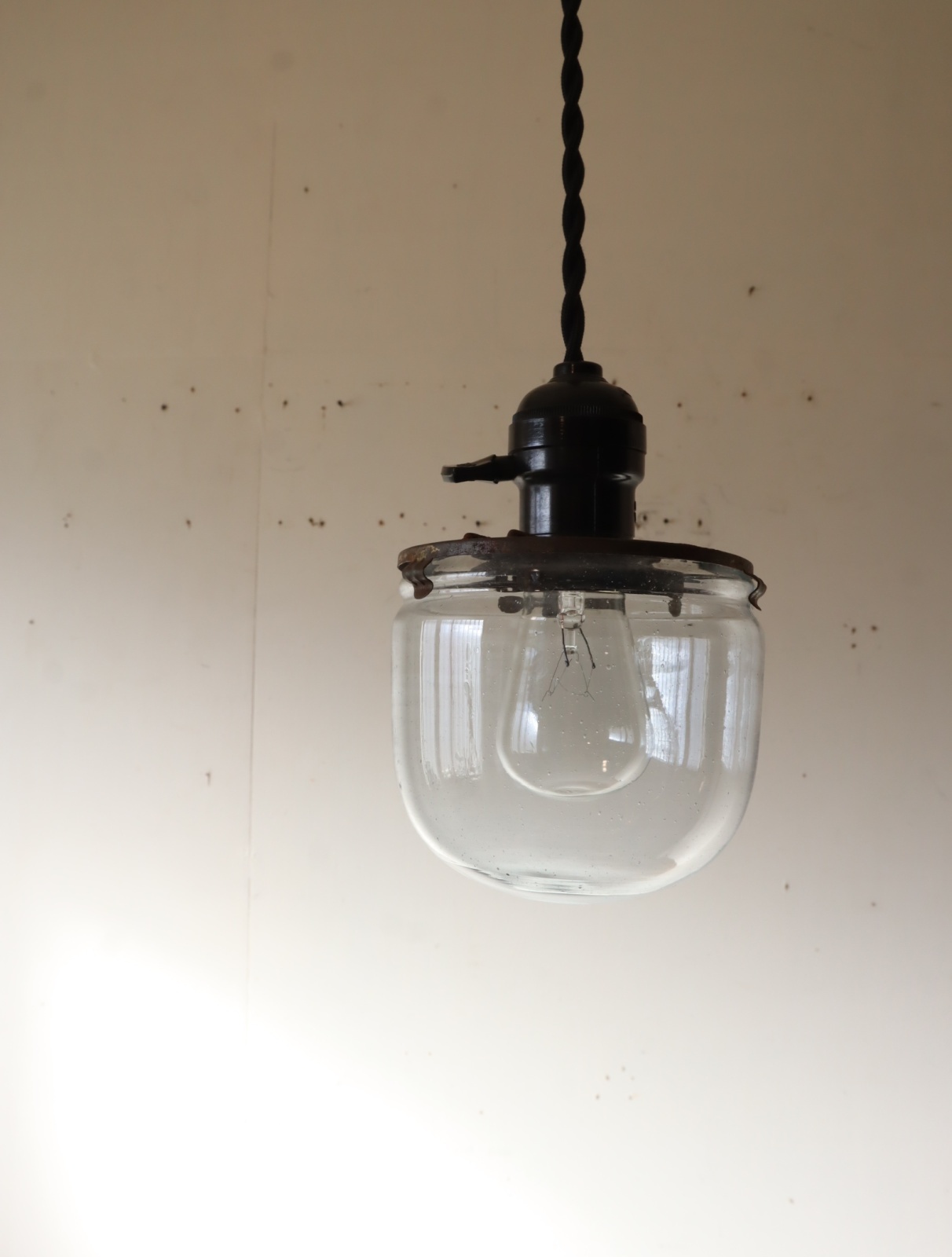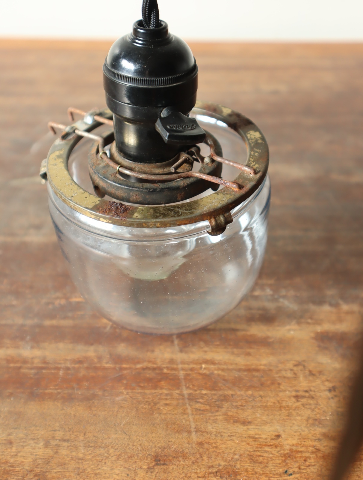 戦前頃の捕虫器のガラスを使ったペンダントライトになります。