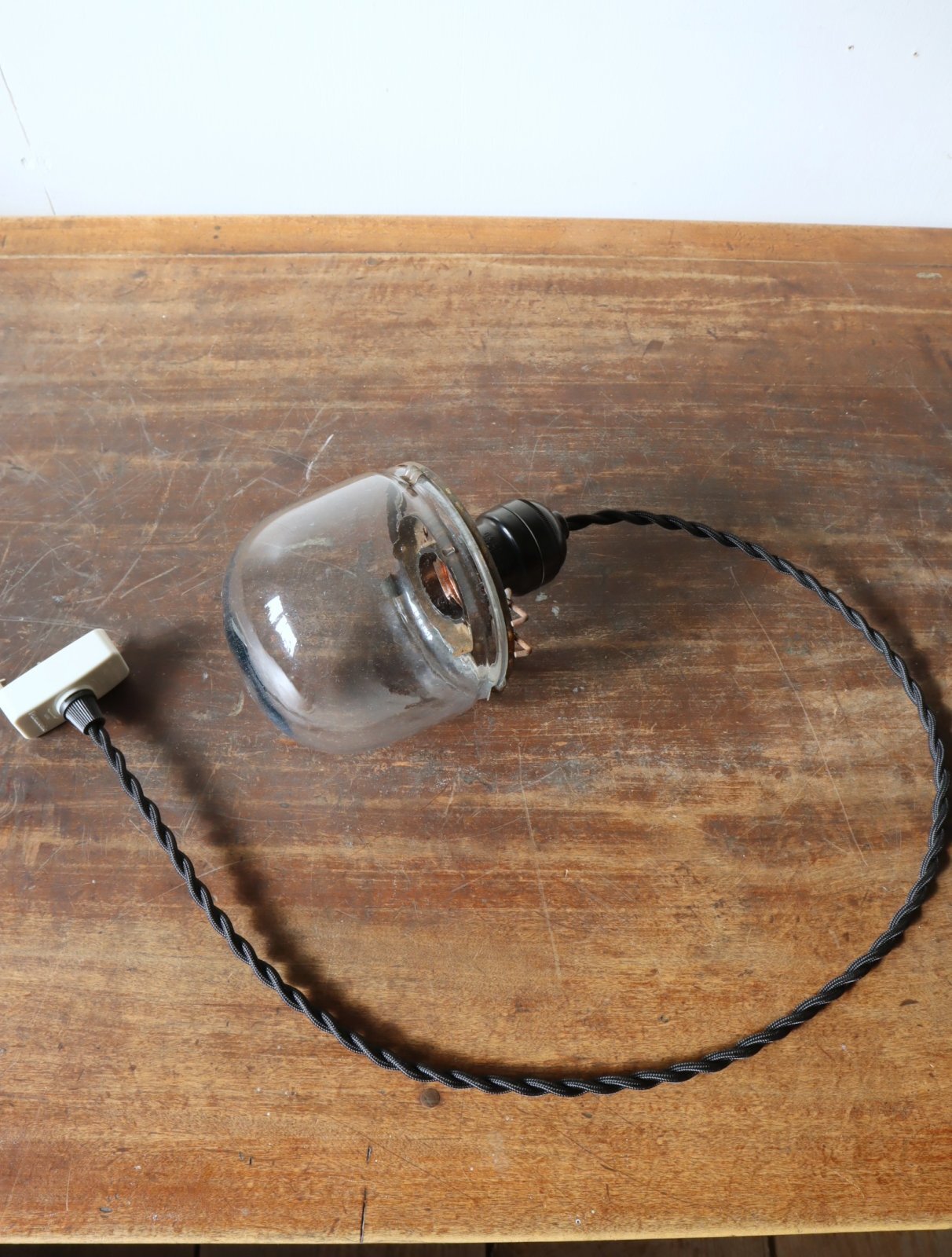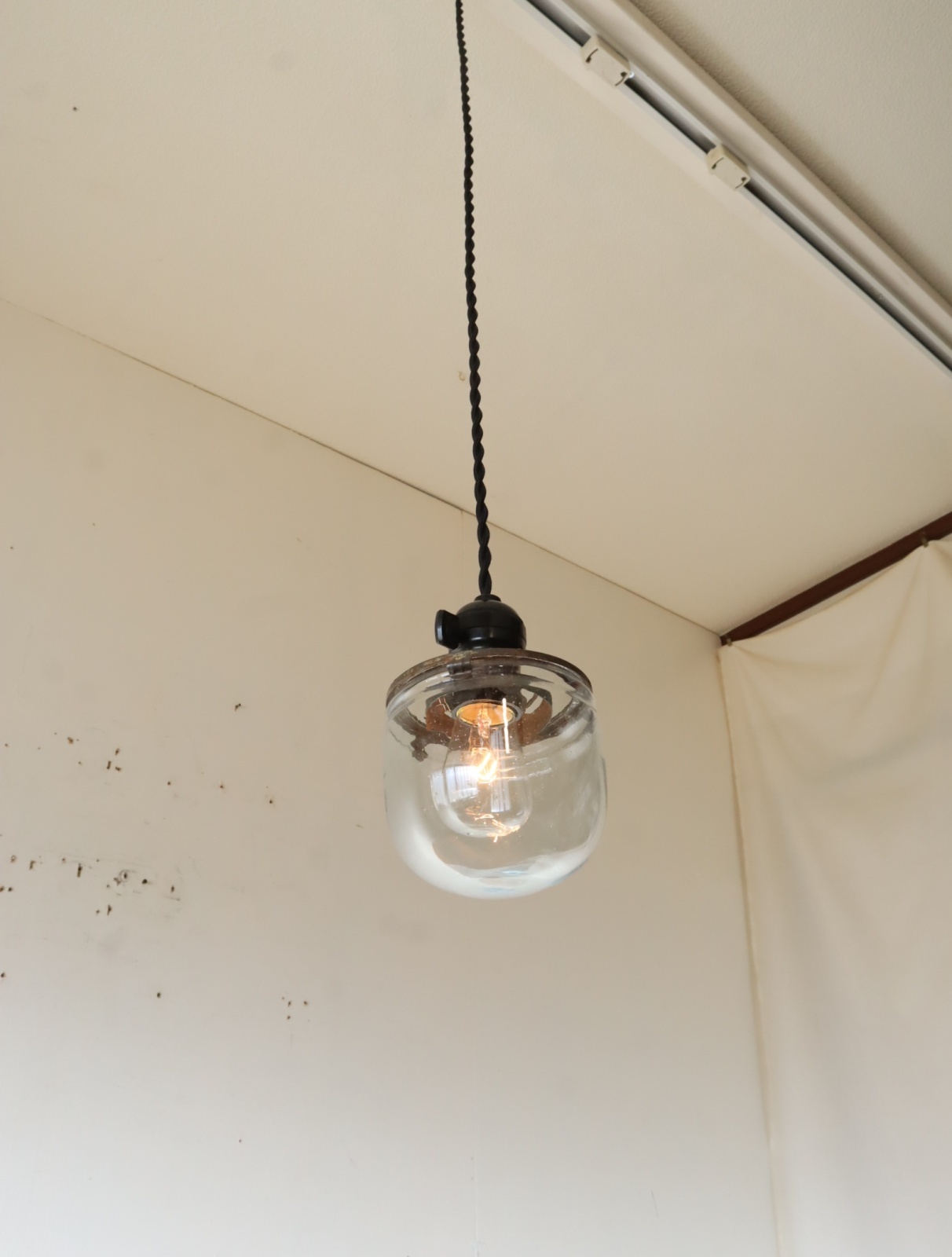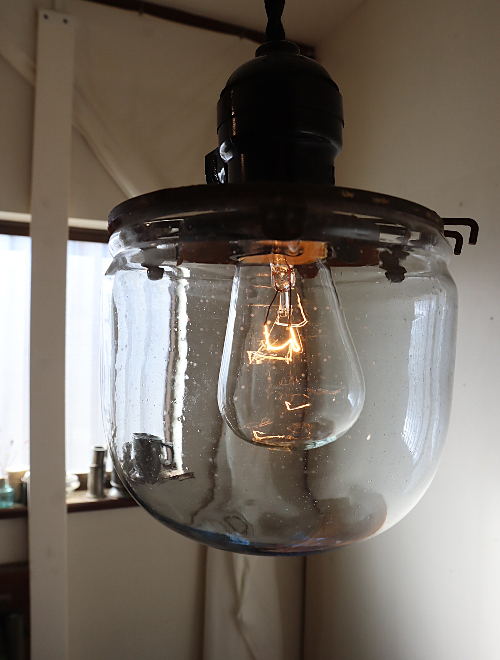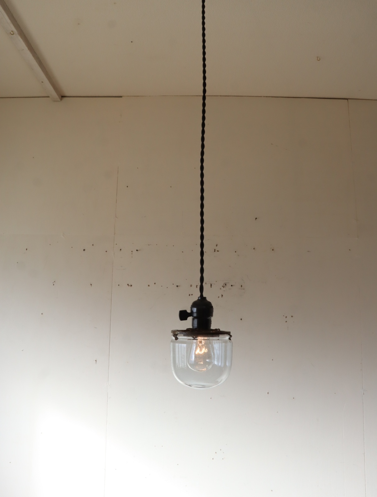 戦前頃の捕虫器のガラスを使ったペンダントライトになります。