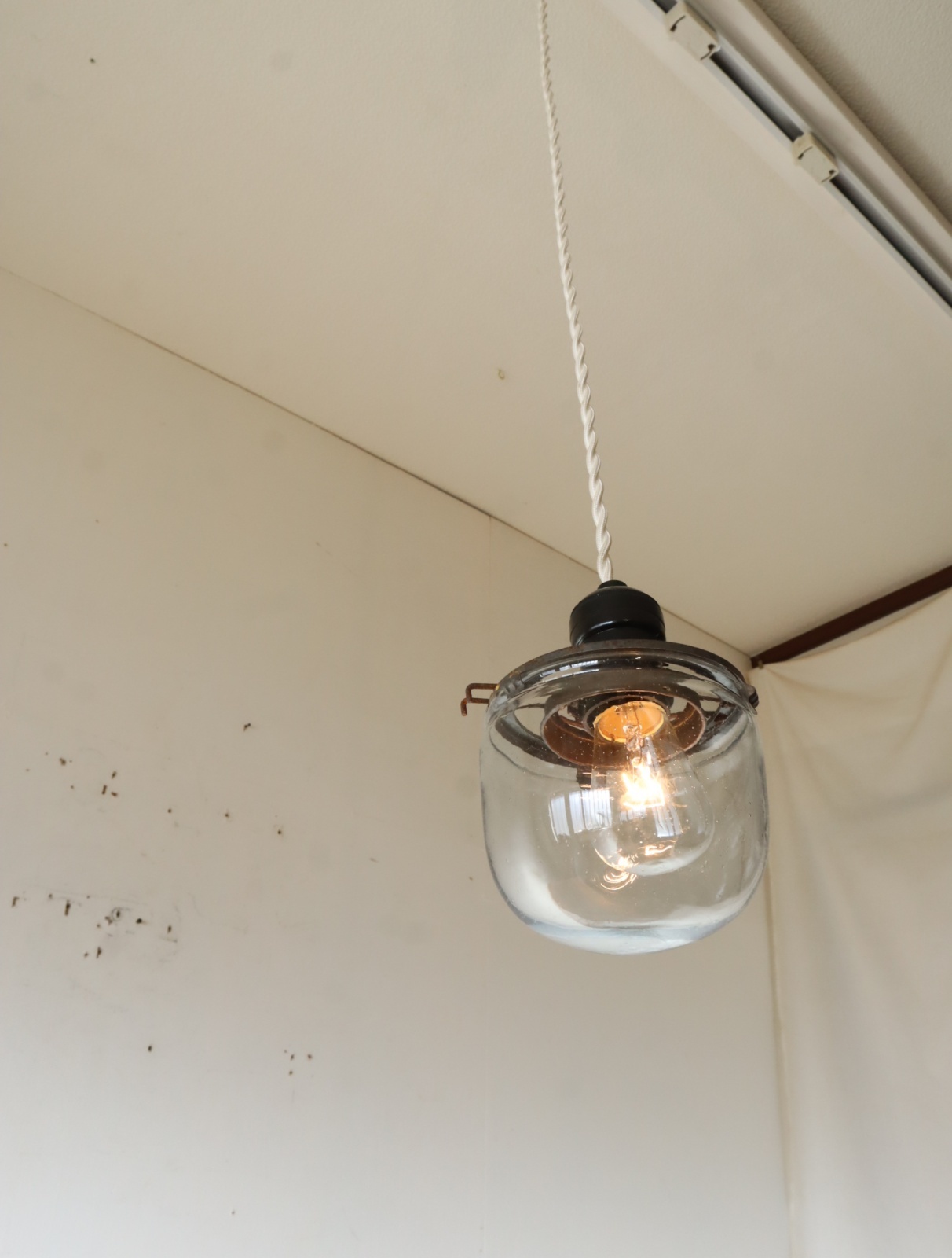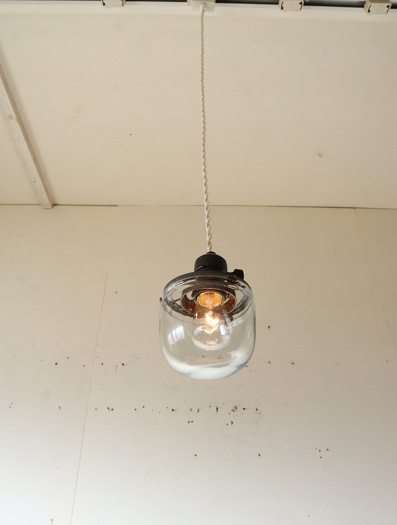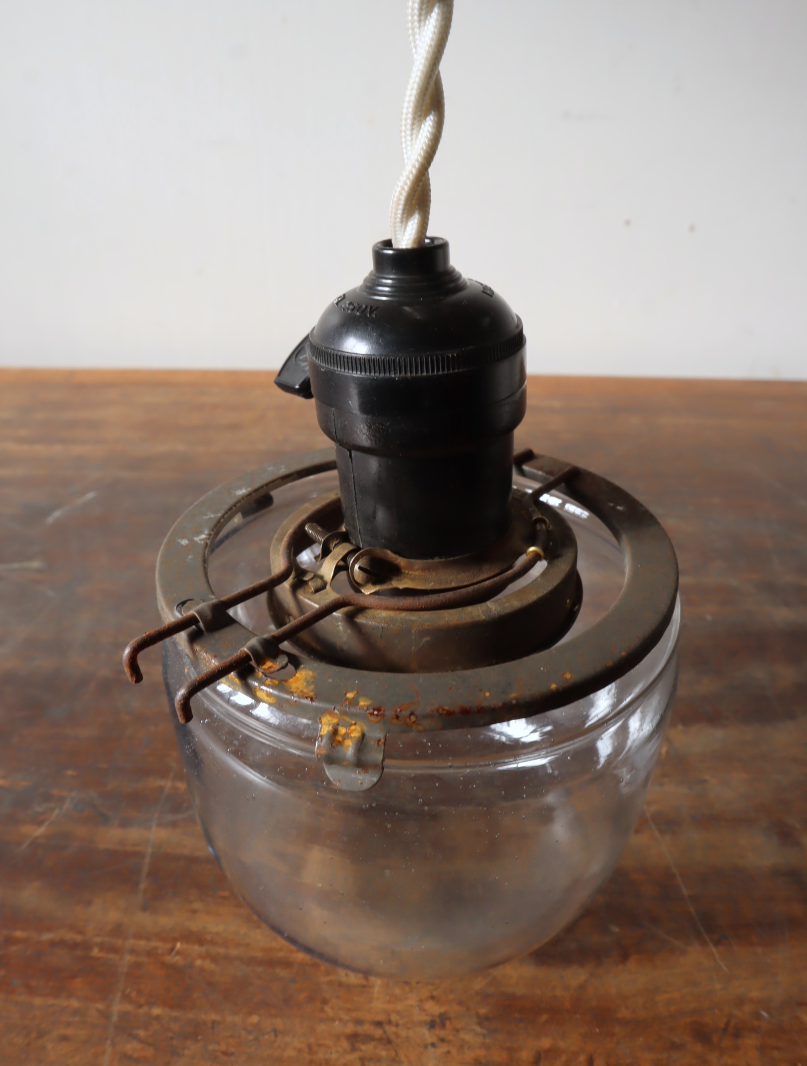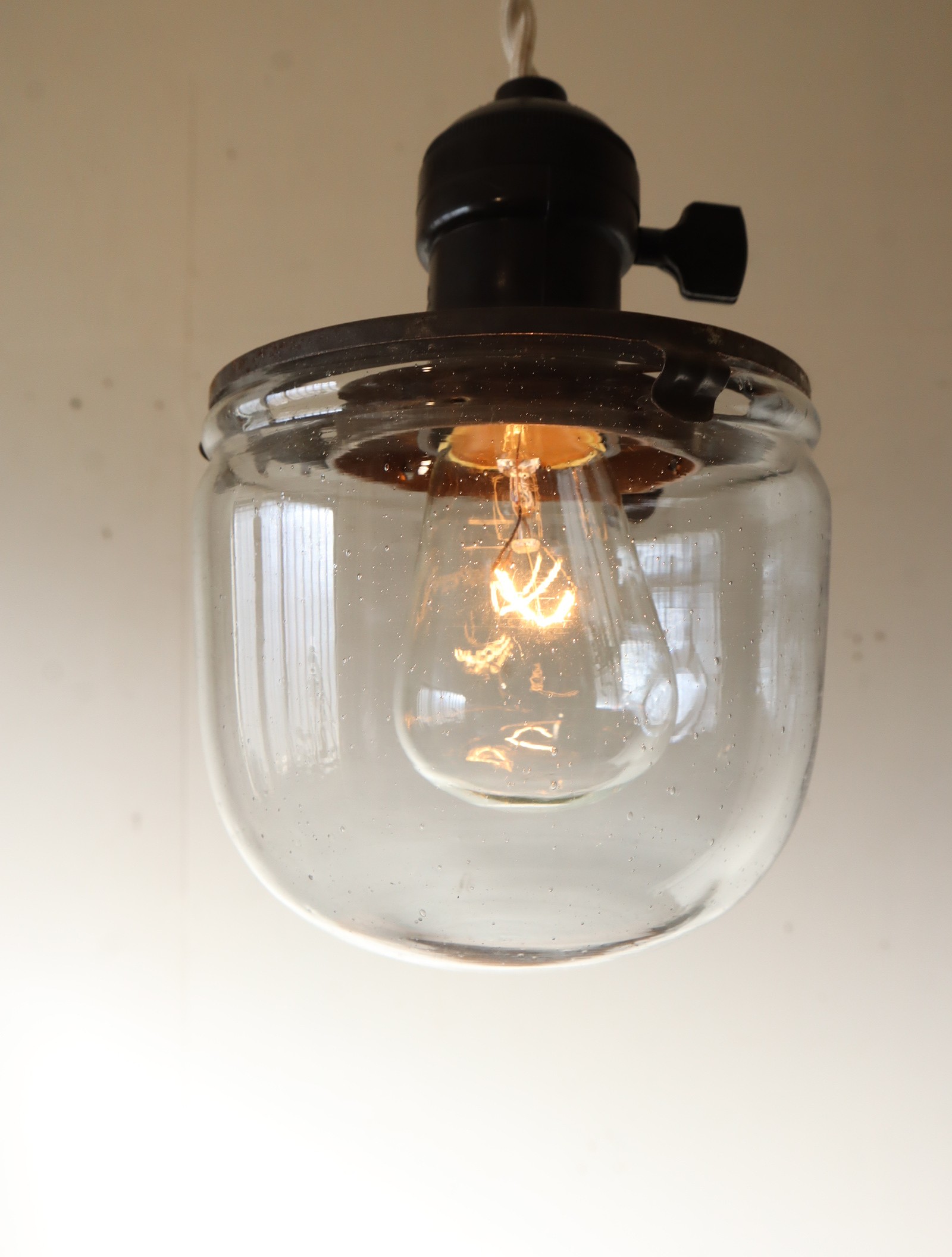 戦前頃の捕虫器のガラスを使ったペンダントライトになります。