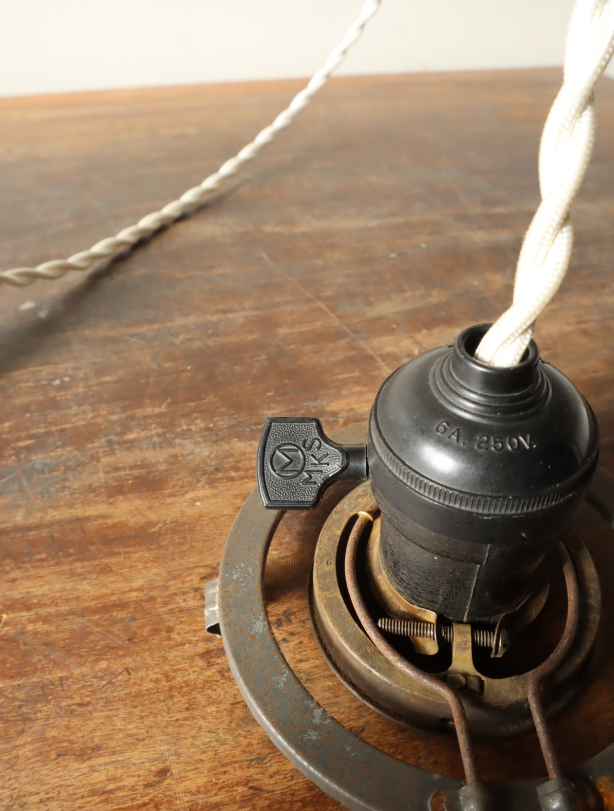 ソケットも古いMEIKOSHAのモノを使っています。ターンスイッチが側面にありますのでon/offの切り替えがおこなえます。