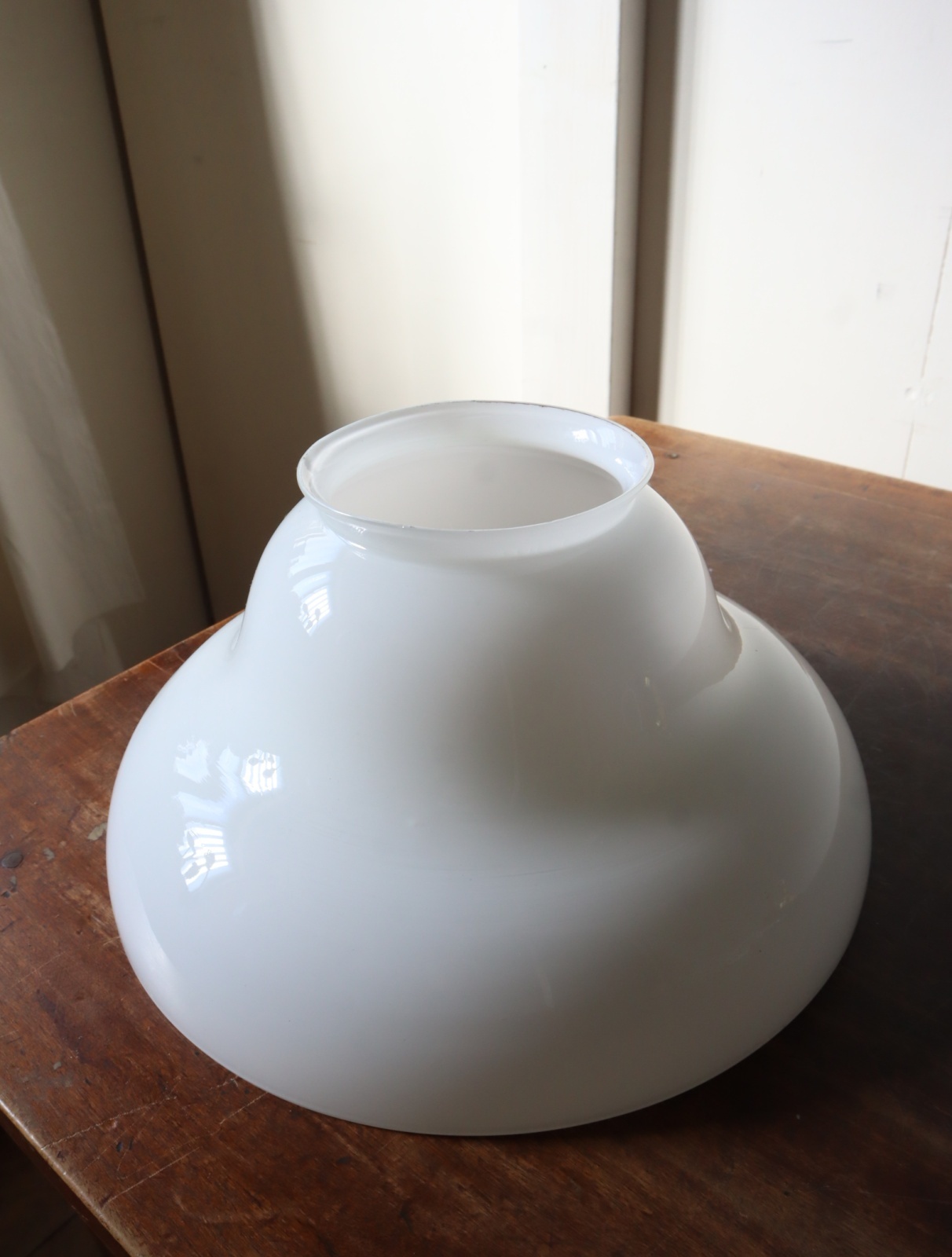 シェードは古いモノになります。スレやキズ、気泡、縁の部分の白色ガラスのソゲ、口部分のギザギザ等があります。