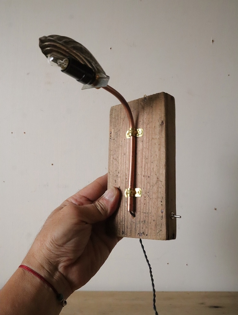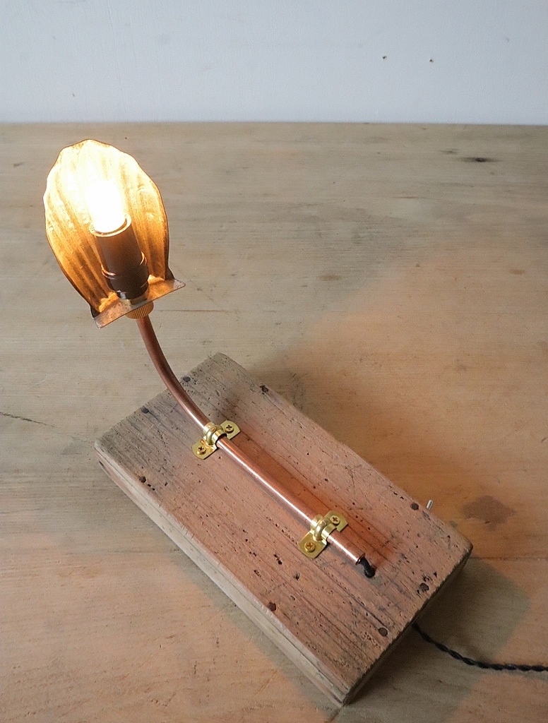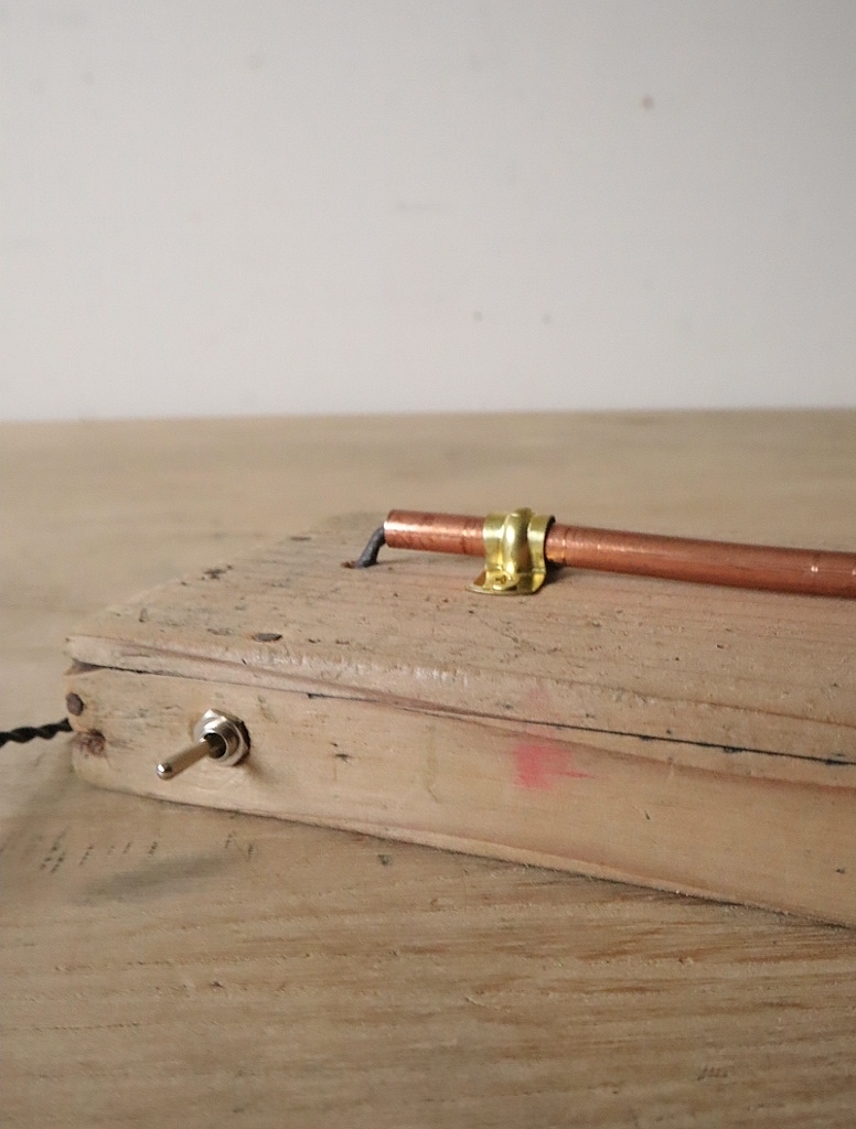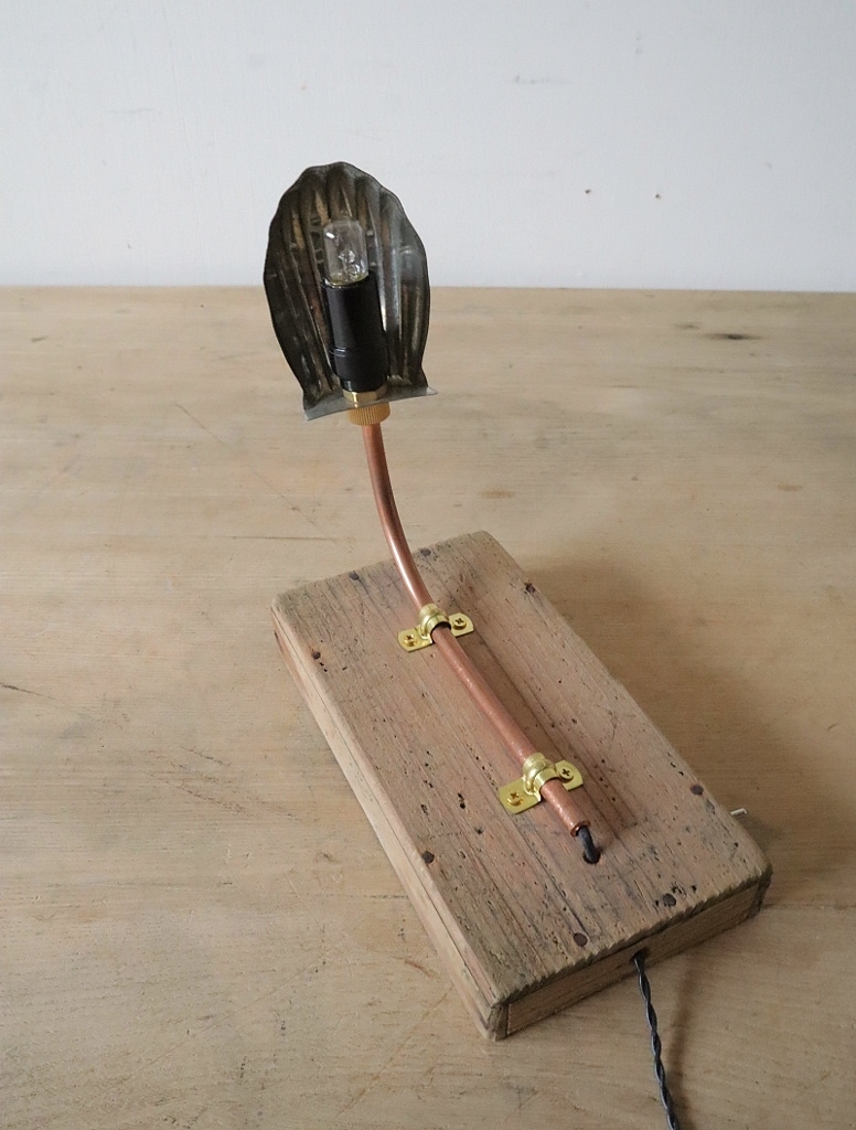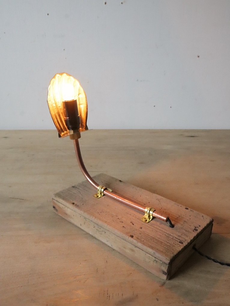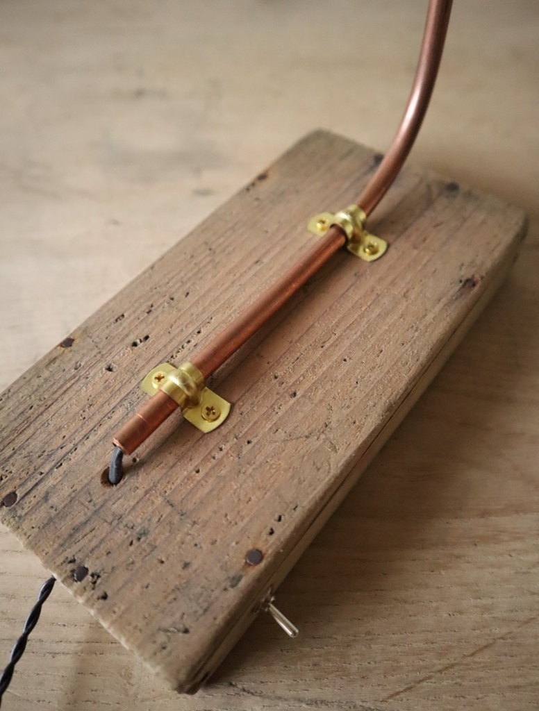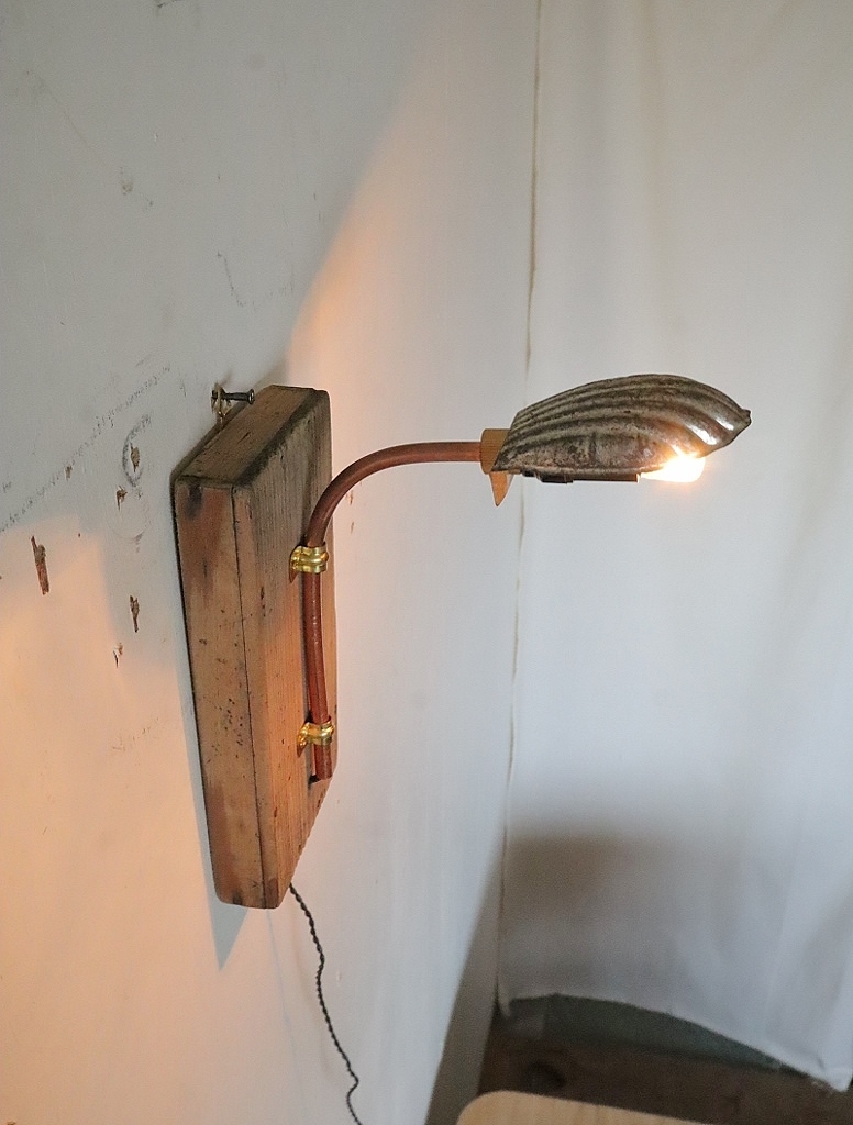 シェードに見立てたマドレーヌの型は小ぶりなサイズのモノを使っています。マドレーヌ型と銅製のパイプはそれぞれ左右の角度調節が可能です。