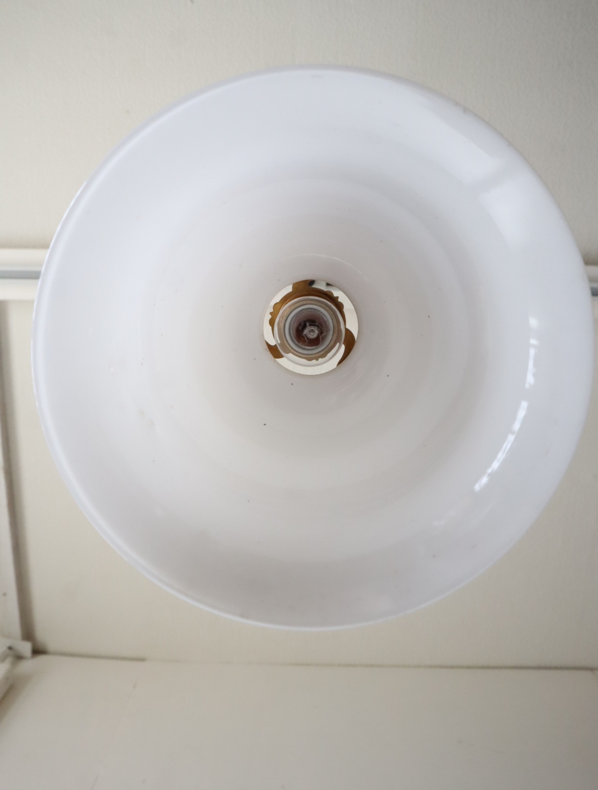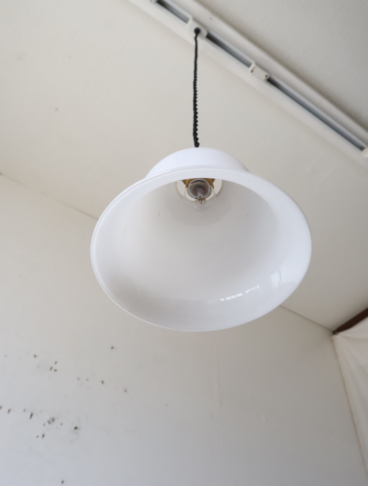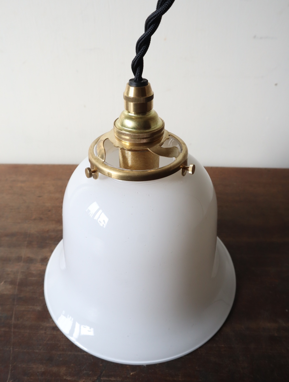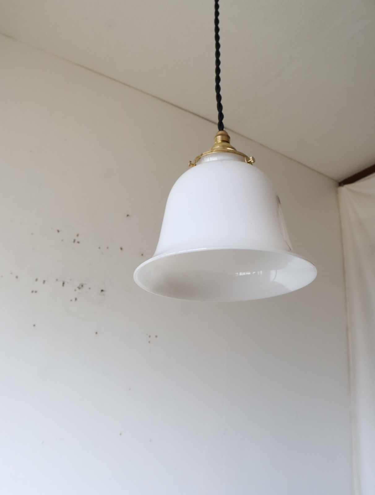 裾が広がったベル型の乳白ガラスのシェードを取り付けたペンダントライトになります。