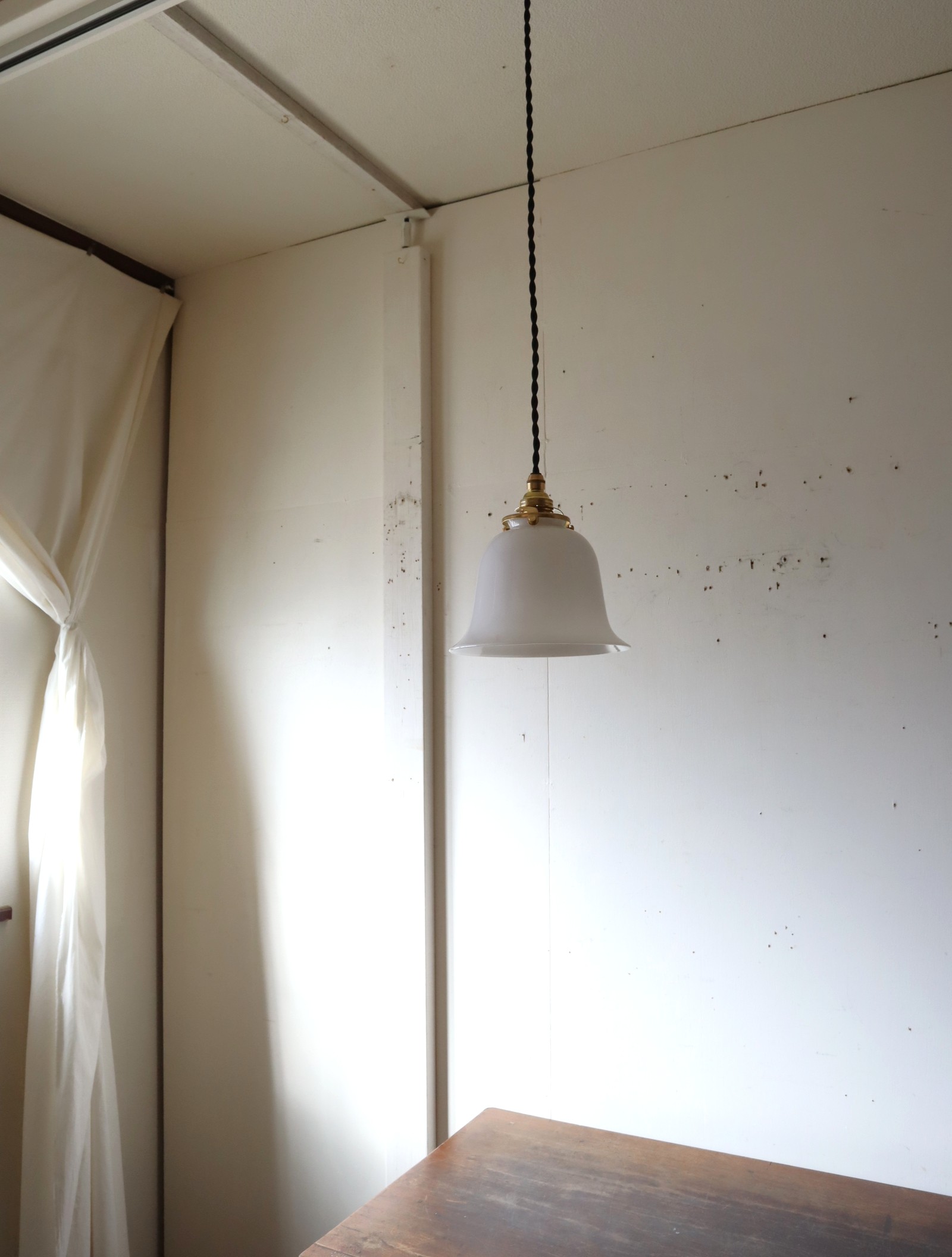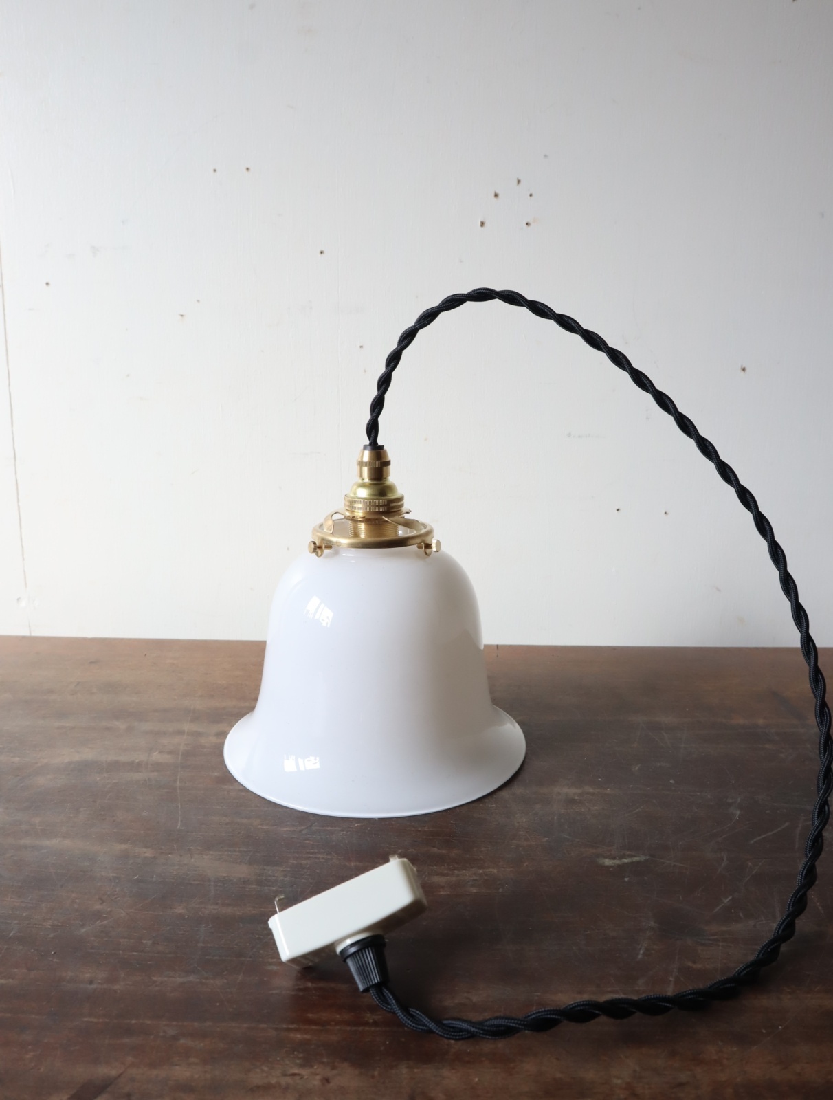 No.220 ベル型乳白ガラスのペンダントライト(コード黒色)
