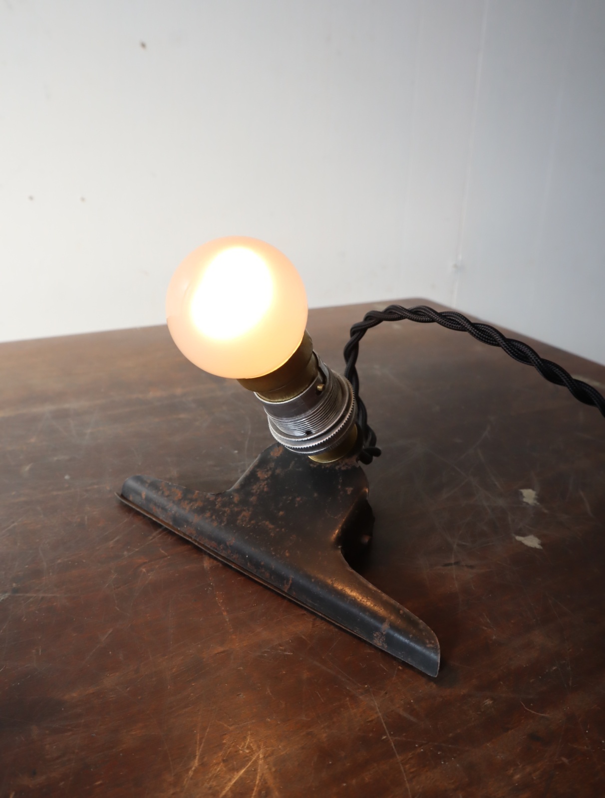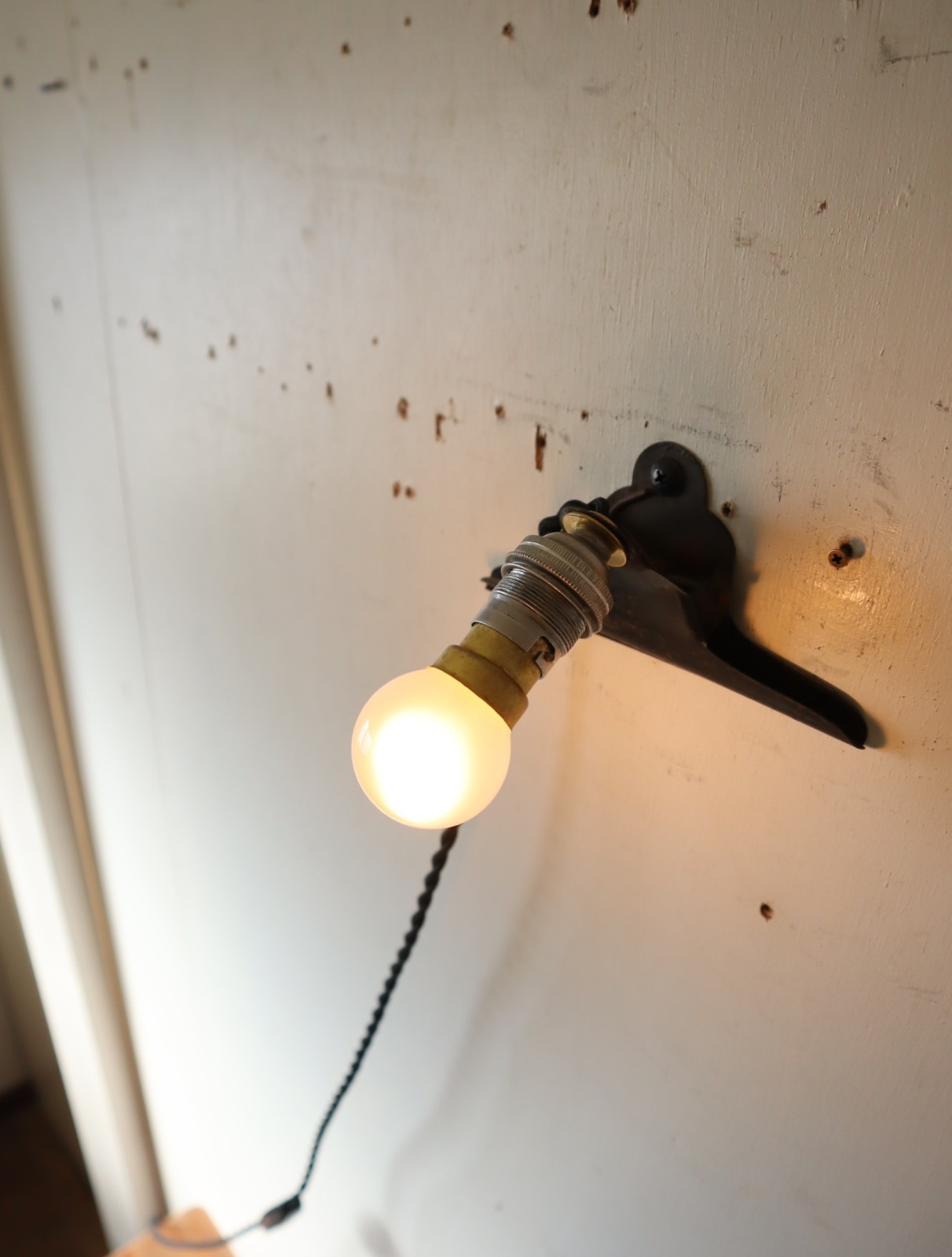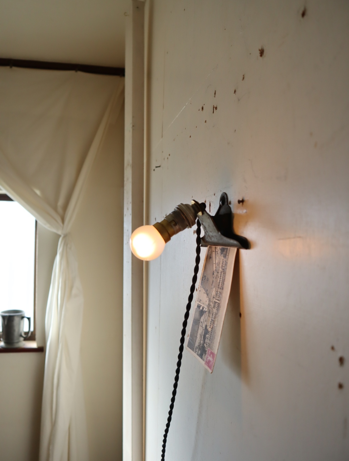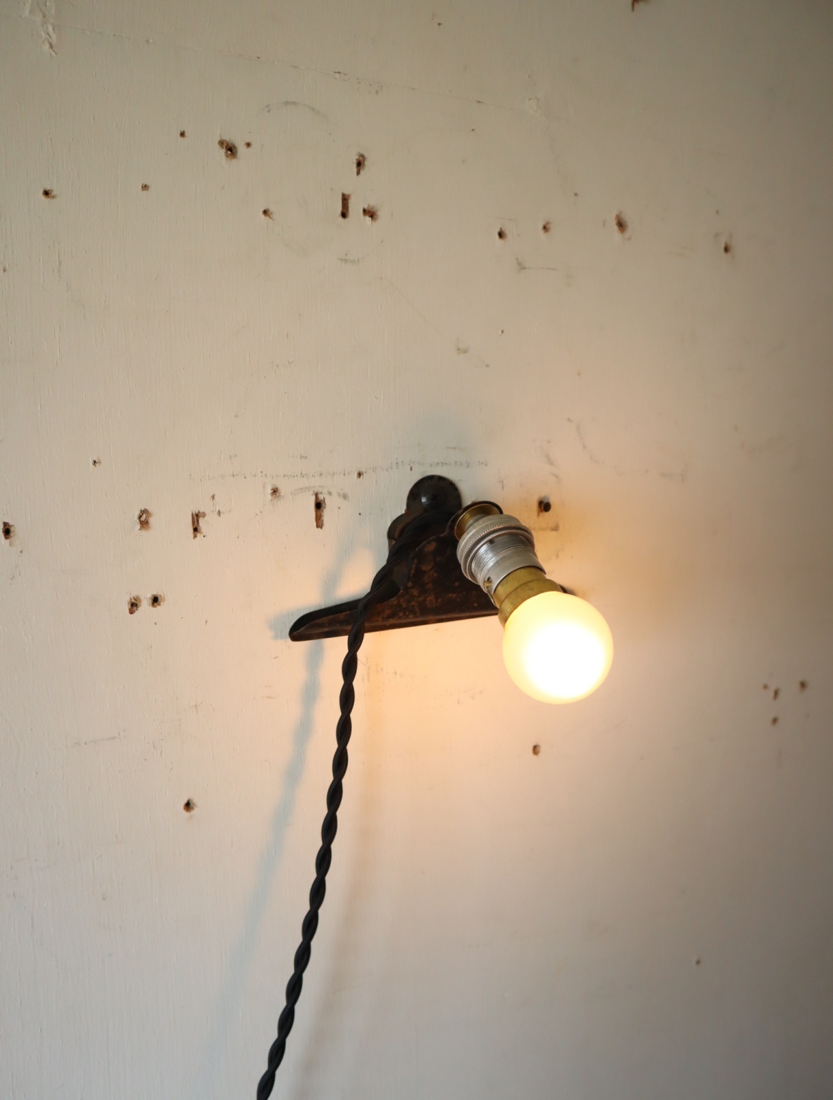 古いフランスのアルミ製ソケットと日本の古い黒色にペイントされたブリキ製のクリップを組み合わせた2wayライトになります。