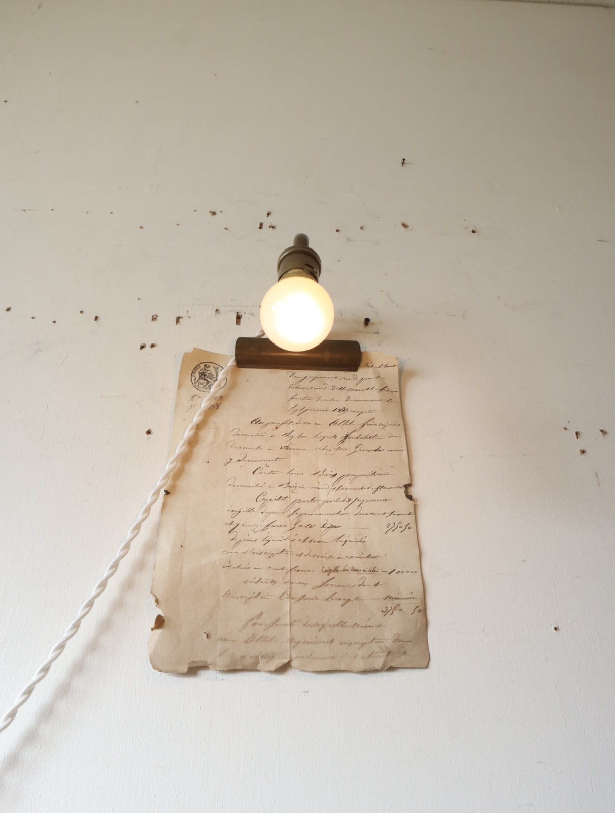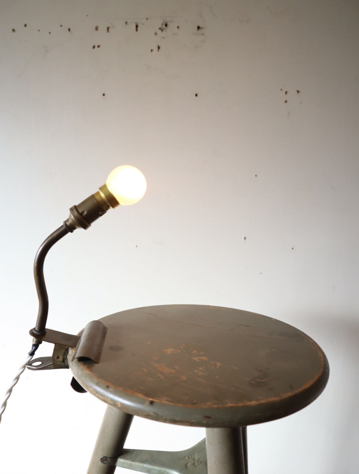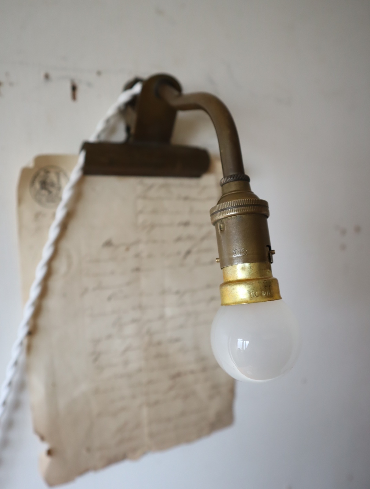 古いフランスの真鍮のアーム付きソケットと日本の古いコンドル印の真鍮製のクリップを組み合わせた2wayライトになります。